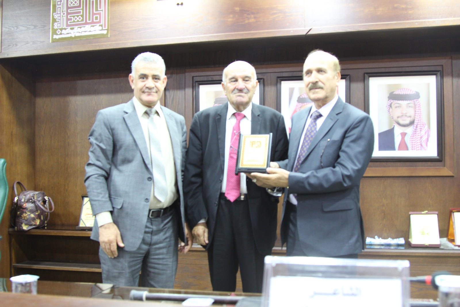 وفي نهاية الحفل قدم د. العياصرة درعاً تكريمياً للشاعر سمحان.