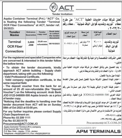 عطاء صادر عن شركة ميناء حاويات العقبة