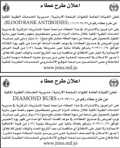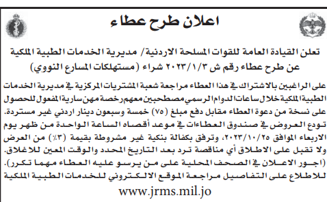 عطاءات صادرة عن الخدمات الطبية الملكية
