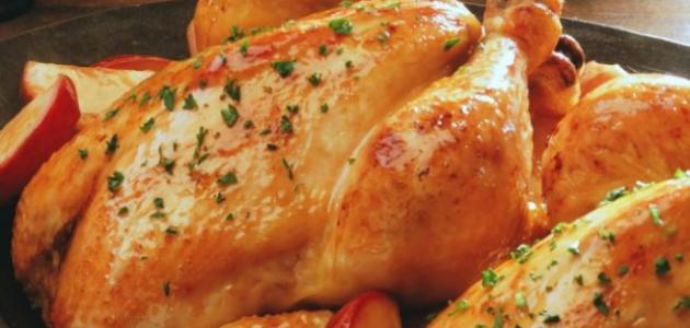 7. حينما تنضج الدجاج ويصبح عصيرًا ومحمرًا، قم بإخراجه من الشواية أو الفرن.