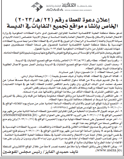 عطاء صادر عن سلطة منطقة العقبة