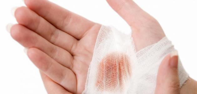 6. تضميد الجرح باستخدام الضمادات أو الشاش الطبية وتثبيتها بواسطة لاصق مناسب.