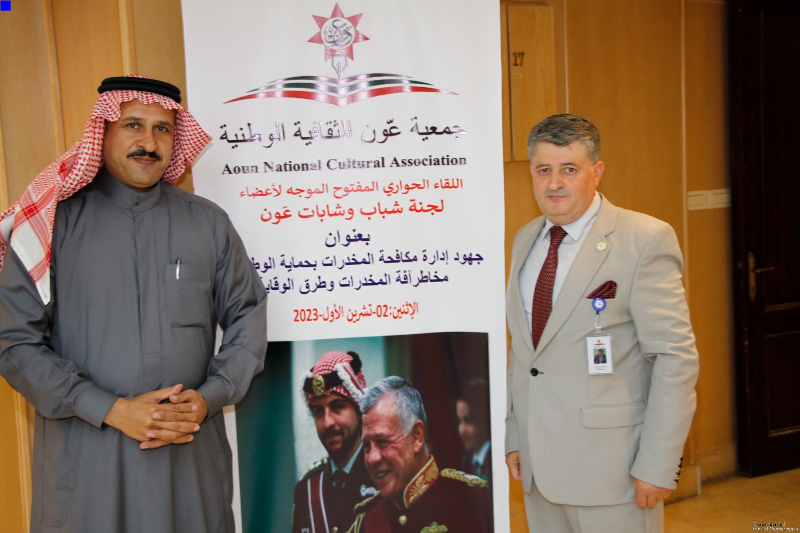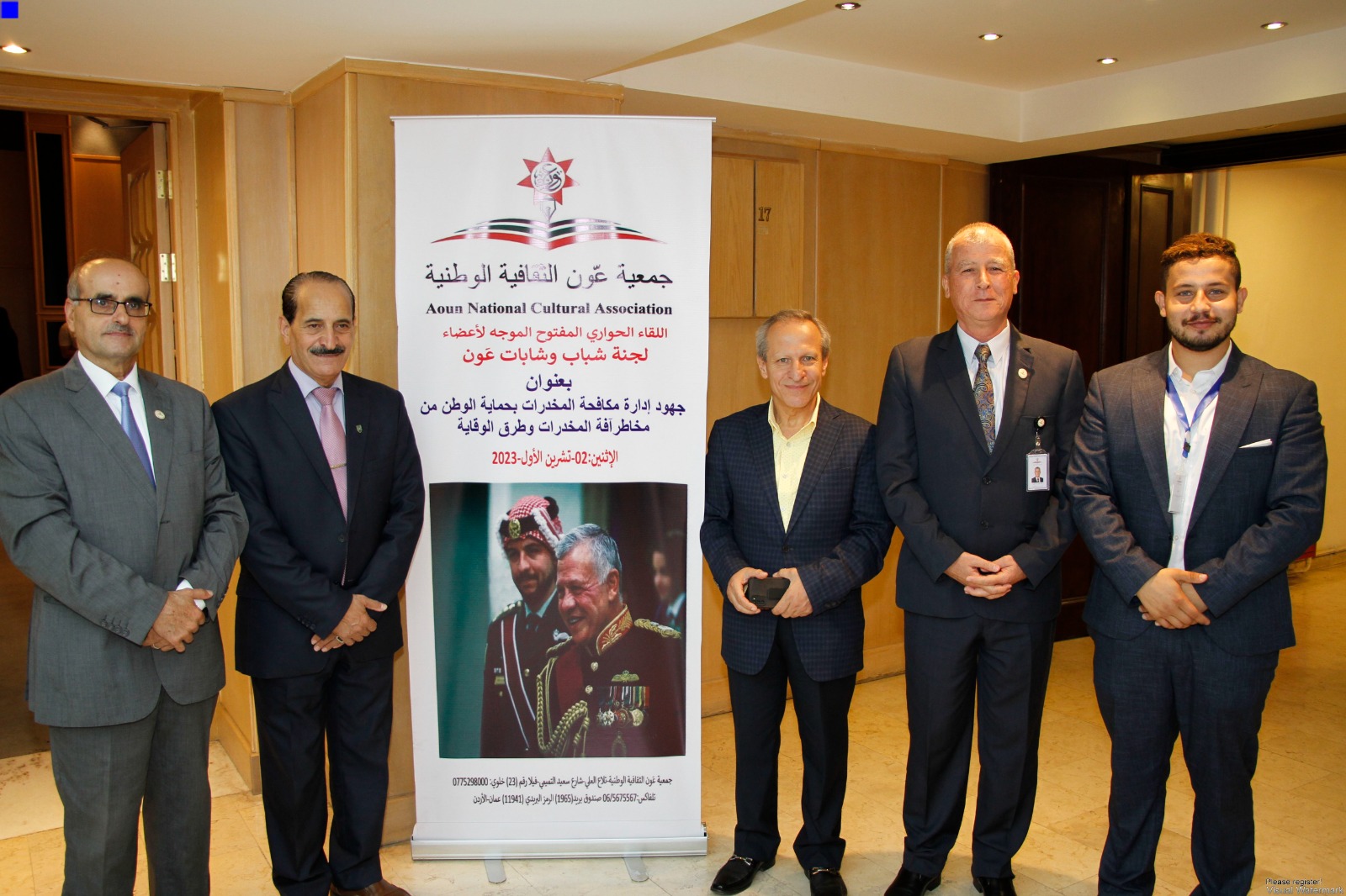 عمون - نظمت جمعية عون الثقافية الوطنية لقاء حوارياً موجها لأعضاء (لجنة شباب وشابات عون) بالتعاون مع غرفة صناعة عمان وإدارة مكافحة المخدرات بعنوان: جهود إدارة مكافحة المخدرات بحماية الوطن من مخاطر آفة المخدرات وطرق الوقاية