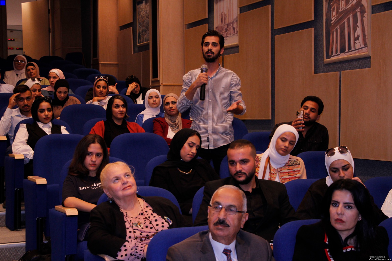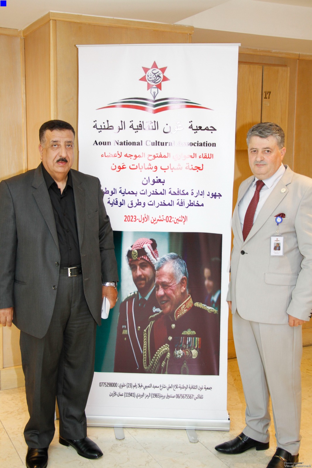 وبدوره اشاد محمد الجالودي مندوب رئيس غرفة صناعة عمان بالدور الكبير الذي تقوم به جمعية عَون الثقافية الوطنية في مجال التوعية والتثقيف وحفظ تاريخ الأردن وحرصها الكبير على عقد مثل هذه اللقاءات في غرفة صناعة عمان مع فئة الشباب وطلبة الجامعات. وأشار الى الجهد العظيم الذي تقوم به إدارة مكافحة المخدرات في مجالات المتابعة والتوعوية مشيراً إلى أهمية تظافر كافة الجهود لدعم هذه الإدارة بمهامها وواجباتها.
