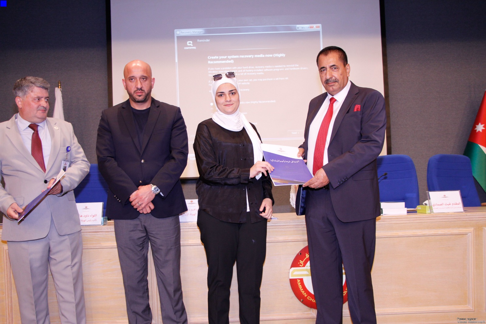 كما قدم المراشدة والعزام درع الجمعية إلى المقدم غيث الصمادي مندوب ومساعد مدير إدارة مكافحة المخدرات للشؤون القضائية