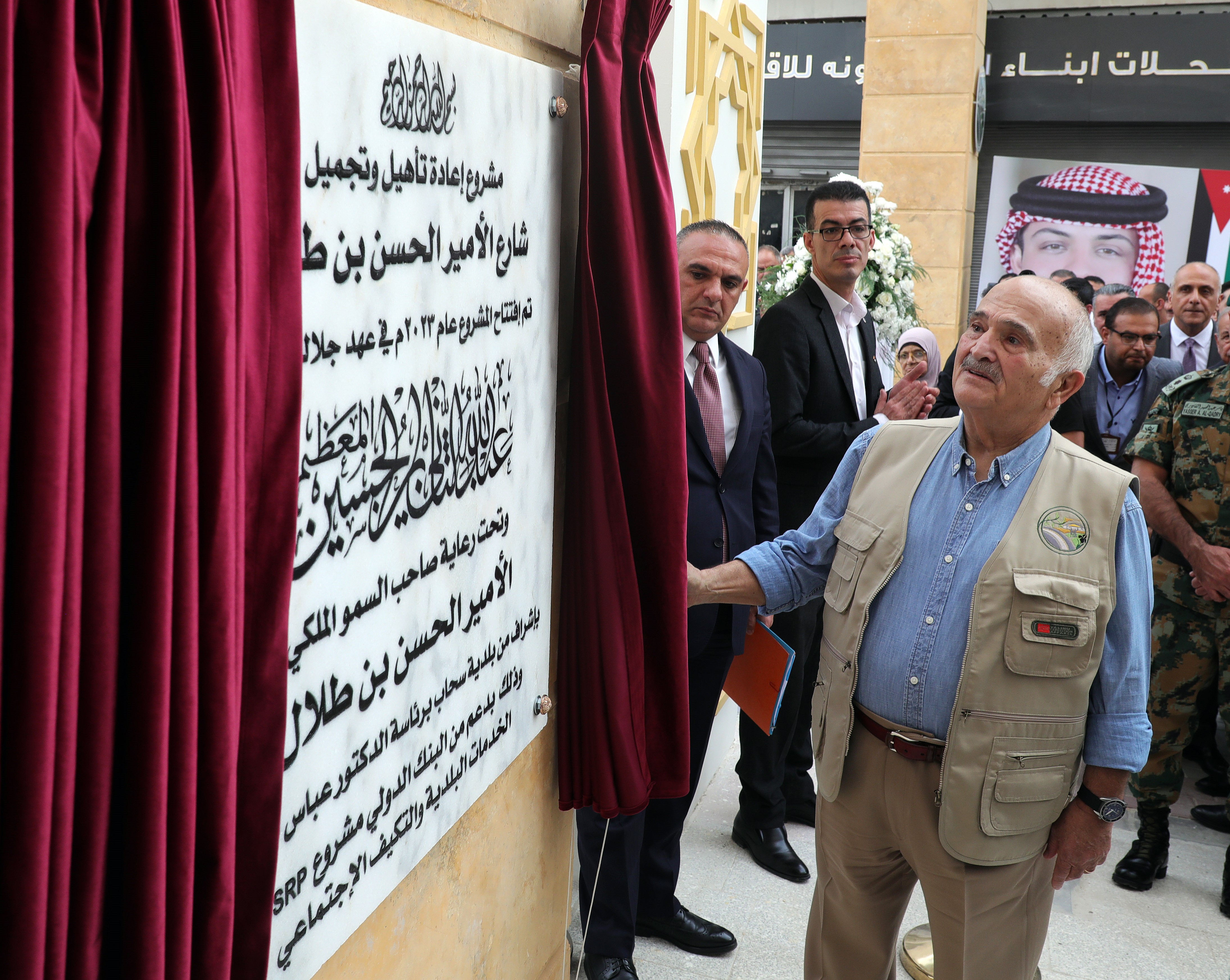 واطلع سموه، بحضور نائب رئيس الوزراء وزير الإدارة المحلية توفيق كريشان، ووزير البيئة الدكتور معاوية الردايدة، ورئيس بلدية سحاب الدكتور عباس المحارمة على تصميم الشارع والسوق والمحلات التجارية فيه، الذي يعد صديقًا للبيئة، ونُفّذ ضمن مشروع الخدمات البلدية والتكيف الاجتماعي بتمويل من البنك الدولي والحكومة الكندية.