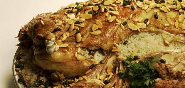 - نضع الذبيحة في طبق التقديم ونزينها بالمكسرات والزبيب حسب الرغبة.