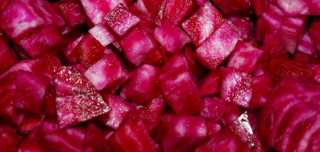 3. قطع الشمندر إلى قطع متساوية حسب الحاجة. يمكن قطعه إلى شرائح أو مكعبات حسب الوصفة التي تنوي استخدامها.