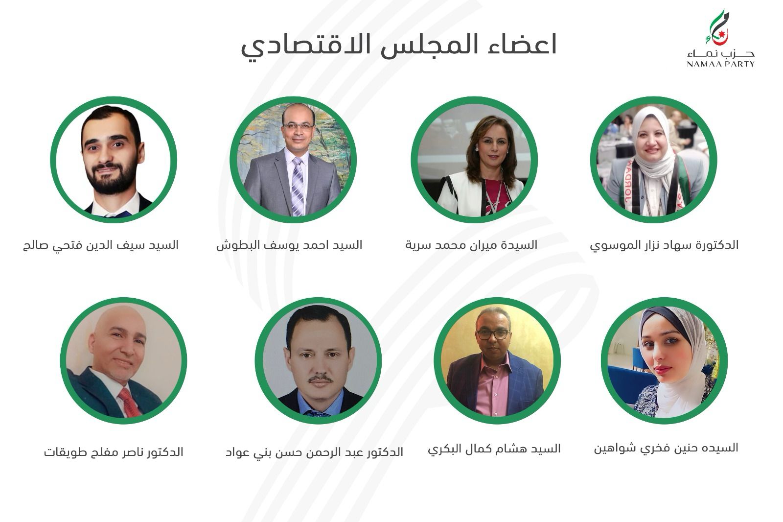 وقد تم تشكيل المجلس الاقتصادي برئاسة الامين العام للحزب الخبير الاقتصادي الدكتور محمد الرواشده وعضوية التالية أسماؤهم: