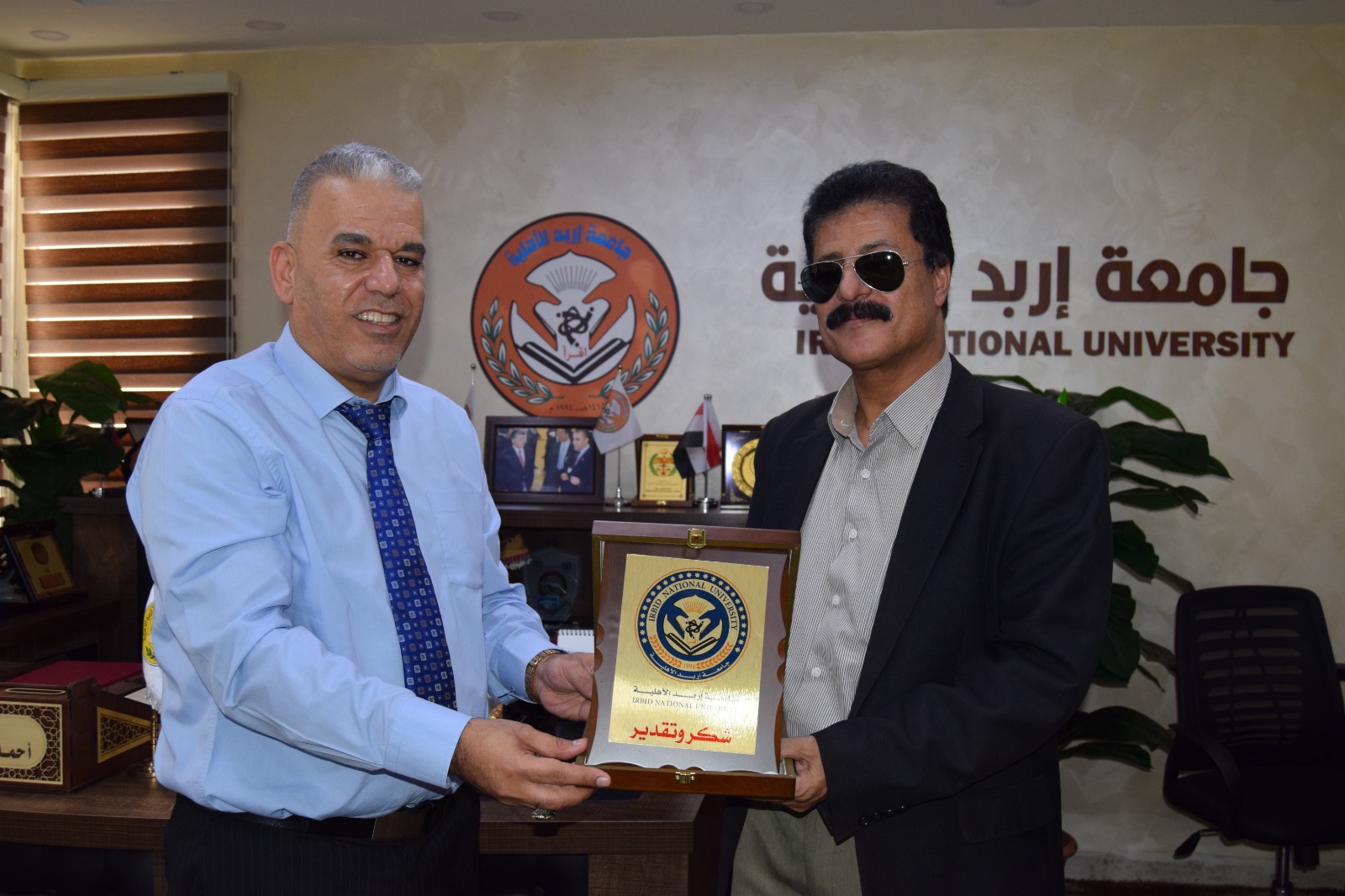 وبنهاية اللقاء قام الأستاذ الدكتور الخصاونة بتقدم درع الجامعة التذكاري للطالب الدكتور المهندس النعيمي، ودعاه لمزيد من التواصل مع عمادة كلية القانون ورئاسة الجامعة.