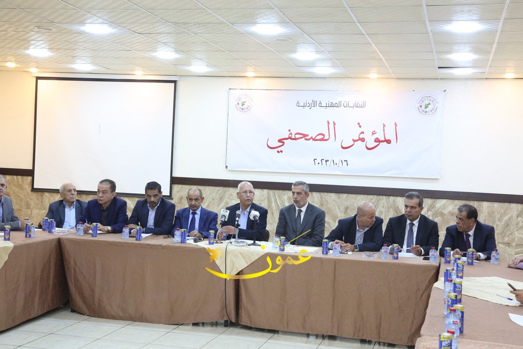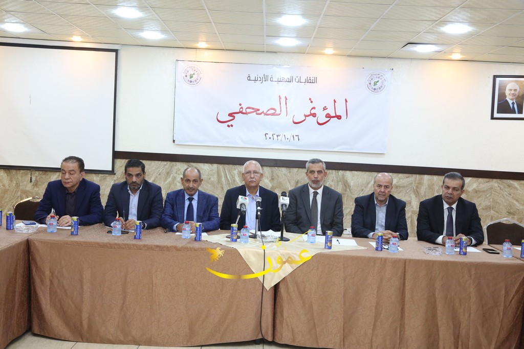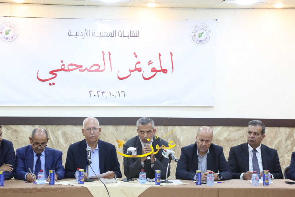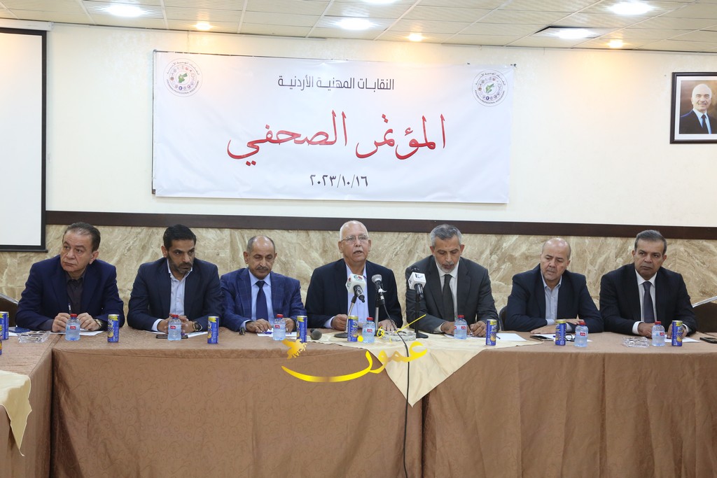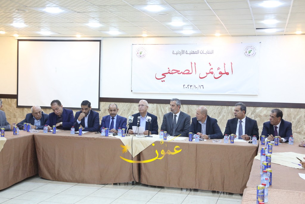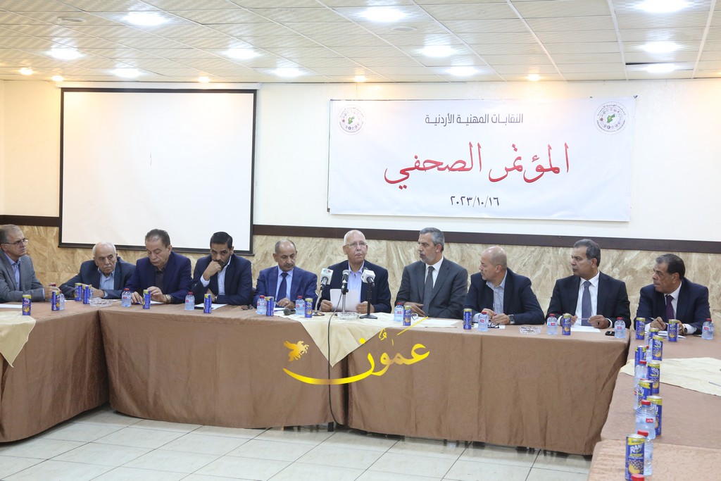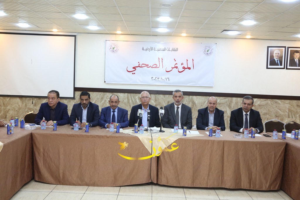 وقال رئيس مجلس النقباء أحمد سماره الزعبي، في مؤتمر صحفي، إنّ العدو الإسرائيلي لا يفهم إلا لغة القوة، وما تزال النقابات المهنية تقف إلى جانب الشعب العربي الفلسطيني الذي هو بأشد الحاجة إلى الوقفة المادية والمعنوية.