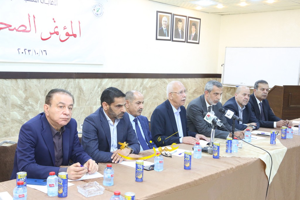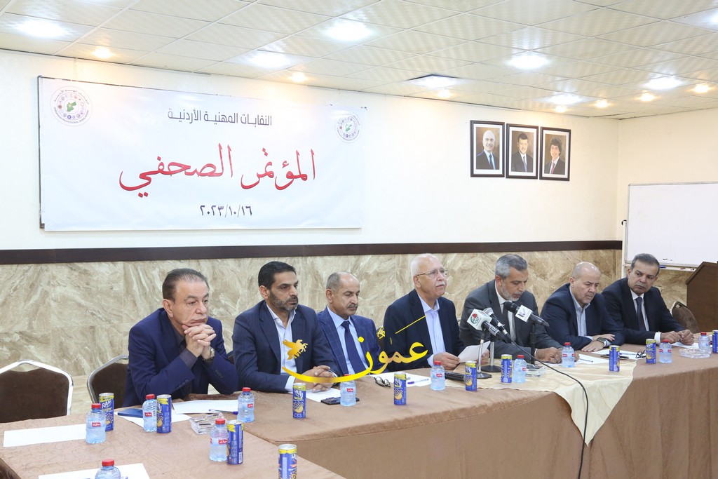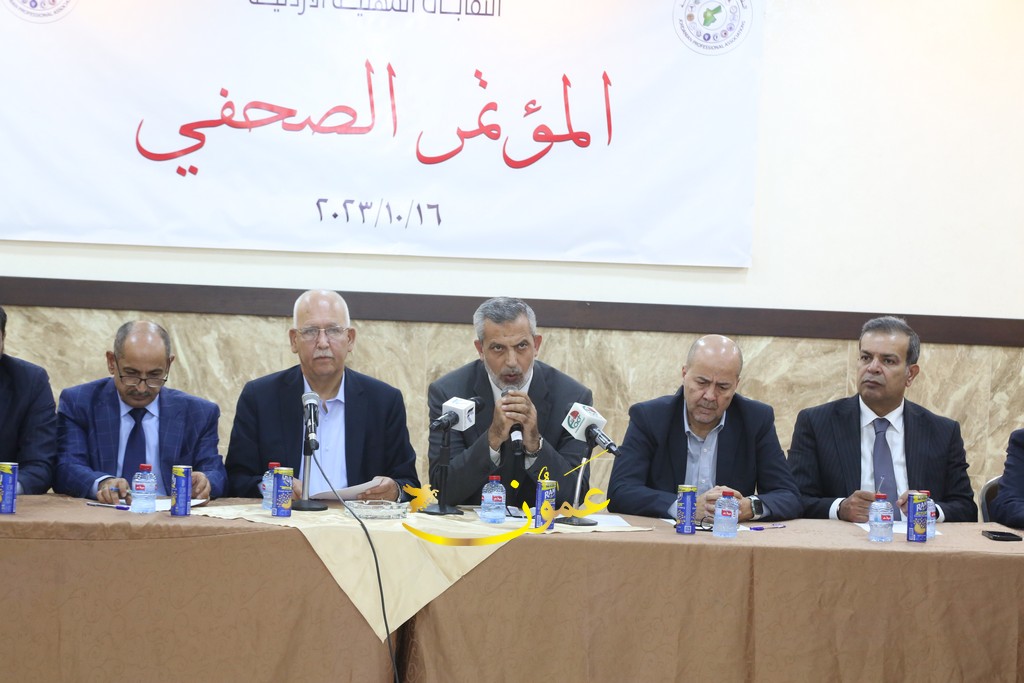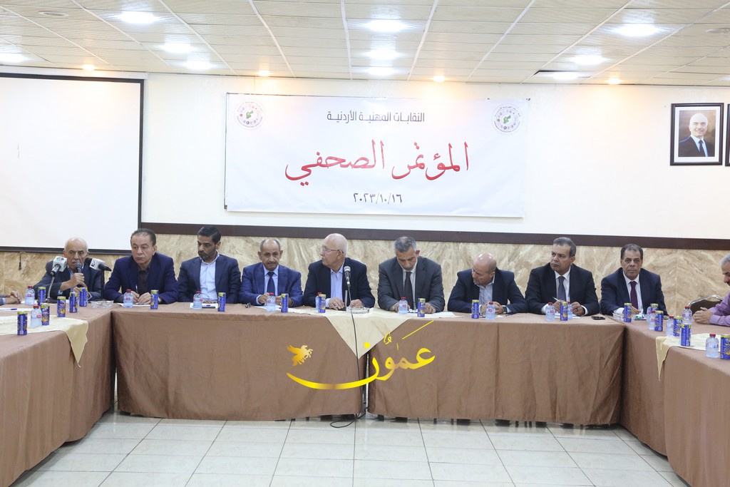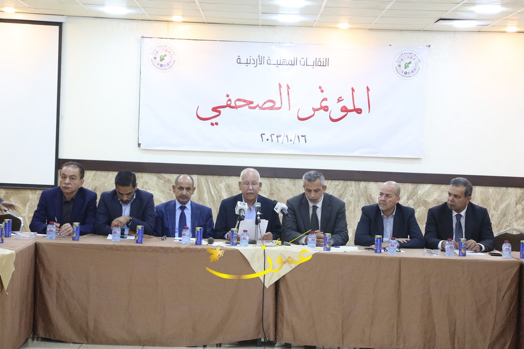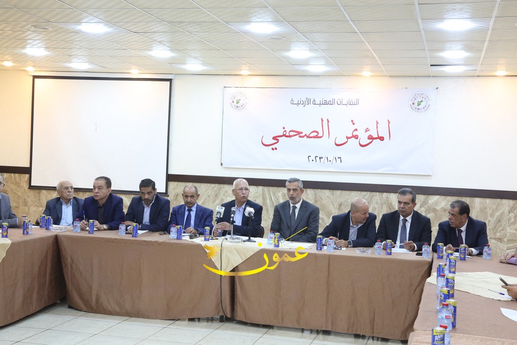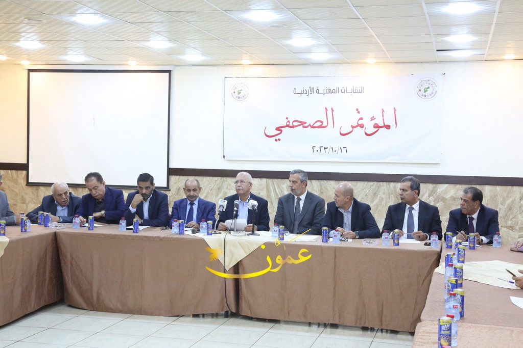 وقال رئيس مجلس النقباء أحمد سماره الزعبي، في مؤتمر صحفي، إنّ العدو الإسرائيلي لا يفهم إلا لغة القوة، وما تزال النقابات المهنية تقف إلى جانب الشعب العربي الفلسطيني الذي هو بأشد الحاجة إلى الوقفة المادية والمعنوية.