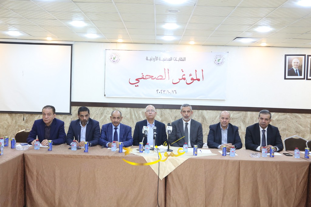 وكشف الزعبي عن قرارات اتخذها المجلس أمس الأحد، للتضامن مع القضية الفلسطينية والوقوف رفضًا للعدوان على غزة، حيث تنظم النقابات وقفة تضامنية يوم الأربعاء، أمام مجمع النقابات المهنية الساعة الرابعة مساءً سيرتدي كل أعضاء نقابة لباسهم المهني.