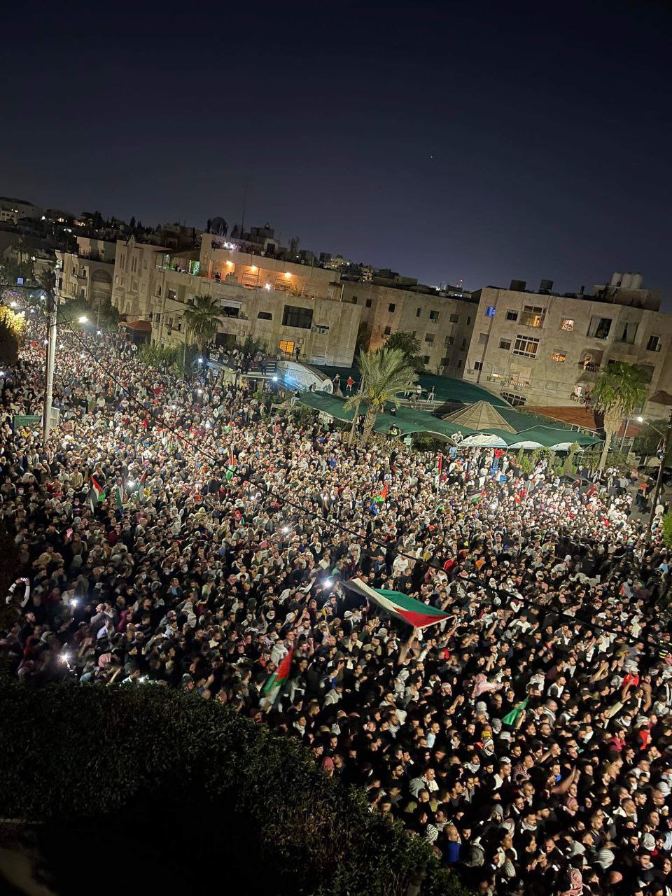 في سياق منفصل، دعا الالاف من الأردنيين إلى إضراب شامل يوم غد الأربعاء؛ للإعلان عن يوم غضب أردني إزاء الأفعال الجرمية التي يرتكبها الاحتلال الإسرائيلي بحق الشعب الفلسطيني.