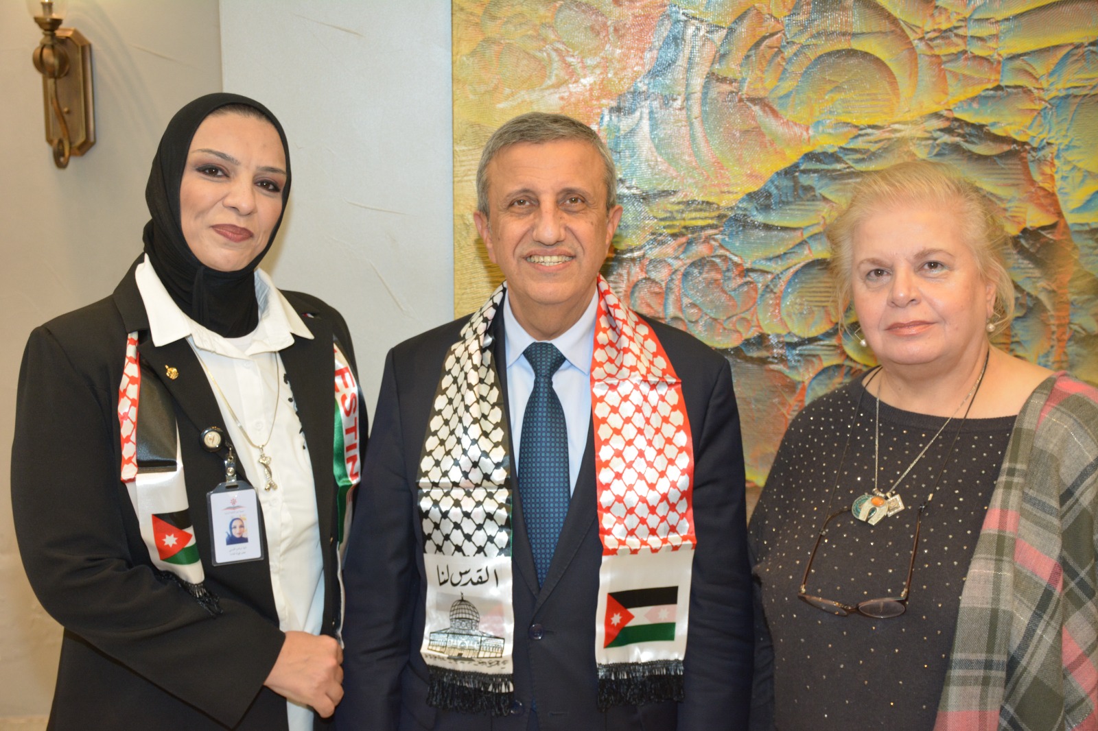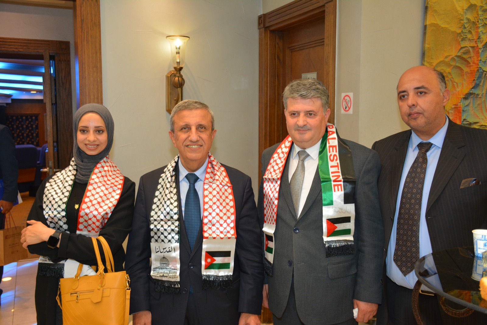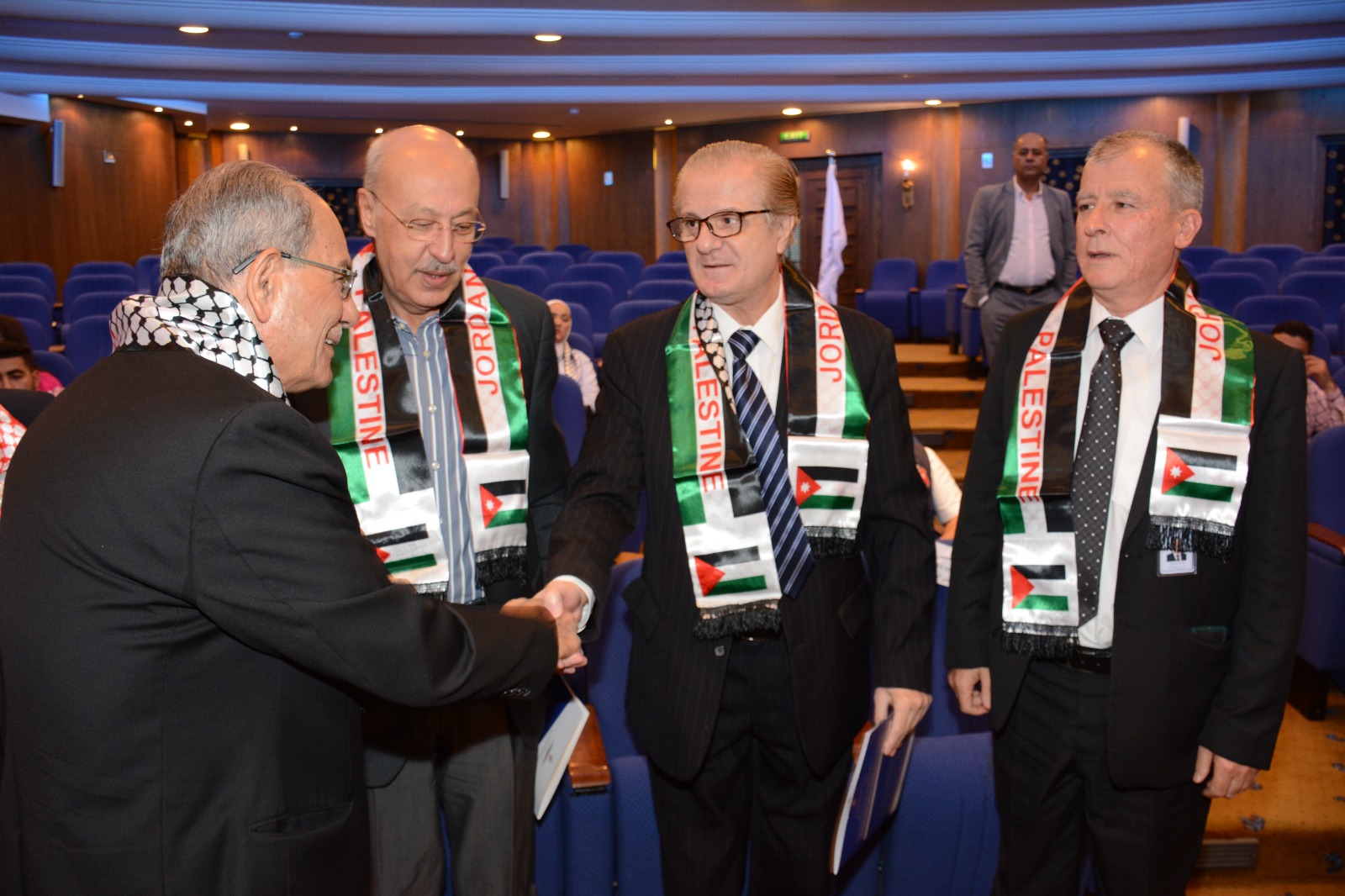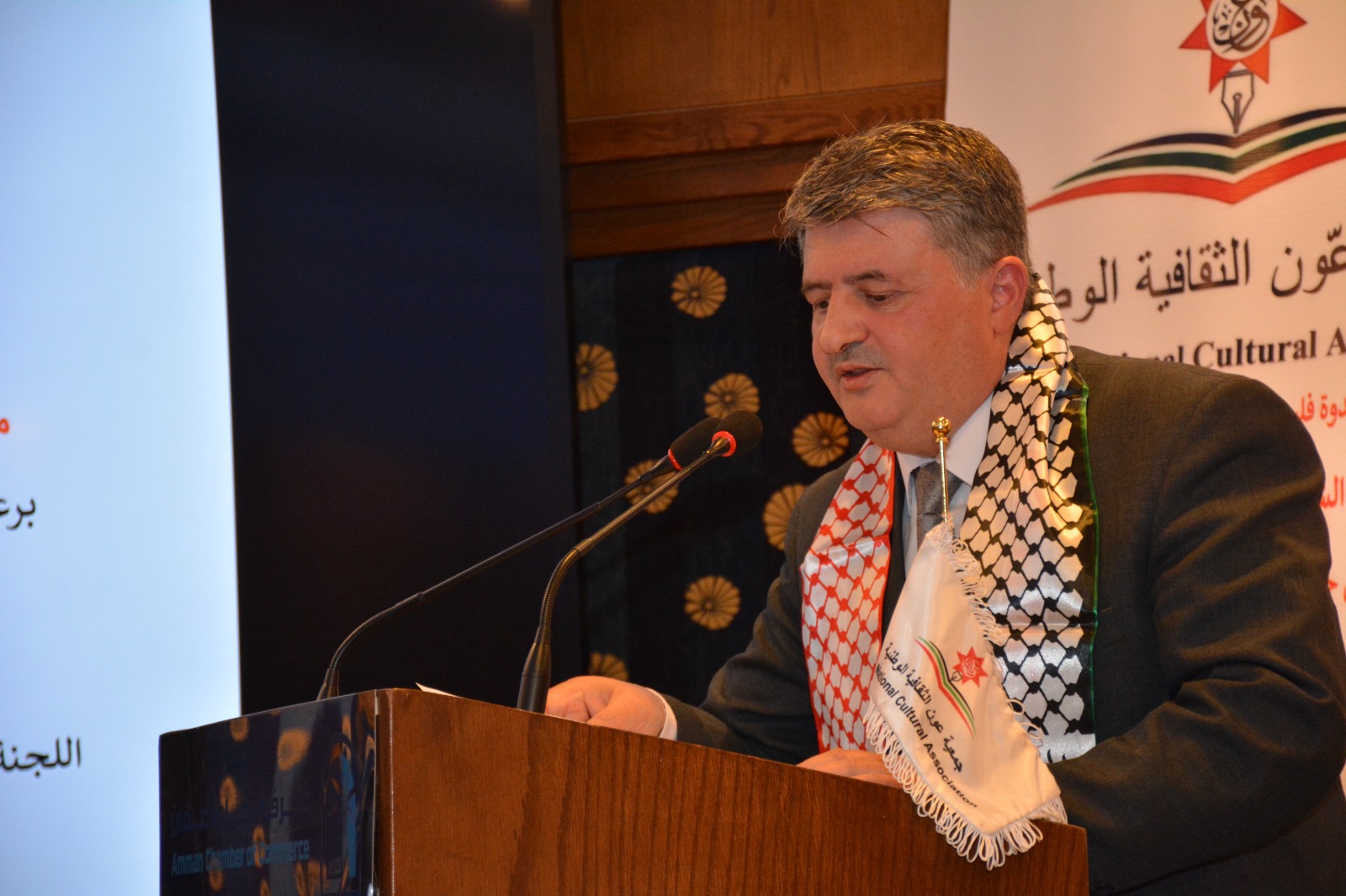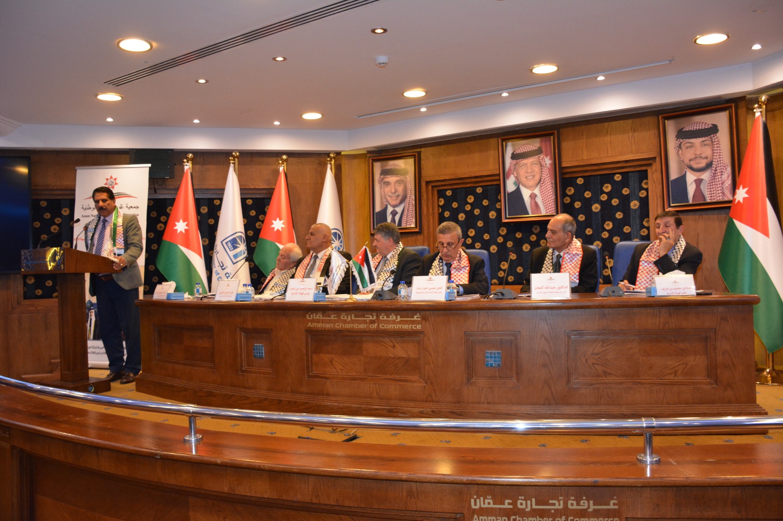 عمون - عقدت جمعية عَون الثقافية الوطنية برعاية العين عيسى حيدر مراد عضو الهيئة الإستشارية والتوجيهية بالتعاون مع اللجنة الملكية لشؤون القدس وغرفة تجارة عمان ندوة عن فلسطين بعنوان "من أردن الشهامة ... إلى فلسطين الكرامة"
