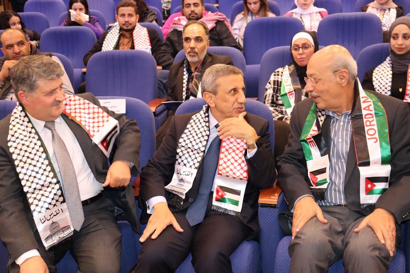وتضمنت الكلمات التي ألقاها على التوالي كل من: اسعد ابراهيم ناجي العزام رئيس الهيئة الإدارية وراعي الندوة العين عيسى حيدر مراد عضو الهيئة الإستشارية والتوجيهية والدكتور عبد الله كنعان أمين عام اللجنة الملكية لشؤون القدس، الإشادة بدور جلالة الملك عبدالله الثاني ابن الحسين بموقفه الثابت والداعم للقضية الفلسطينية وجهوده المباركة من زيارات وإتصالات مع بعض قادة الدول العربية والأوروبية بهدف وقف الإعتداء الغاشم على أهلنا العُزل في قطاع غزة وضرورة توفير الحماية لسكان قطاع غزة الذين يواجهون حرب إبادة جماعية تمارسها بكل قسوة ووحشية آلة الحرب الصهيونية التي تستهدف بشكل مباشر وسافر الأطفال والنساء والمسنين والمستشفيات والمدارس وأماكن العبادة من مساجد وكنائس.
