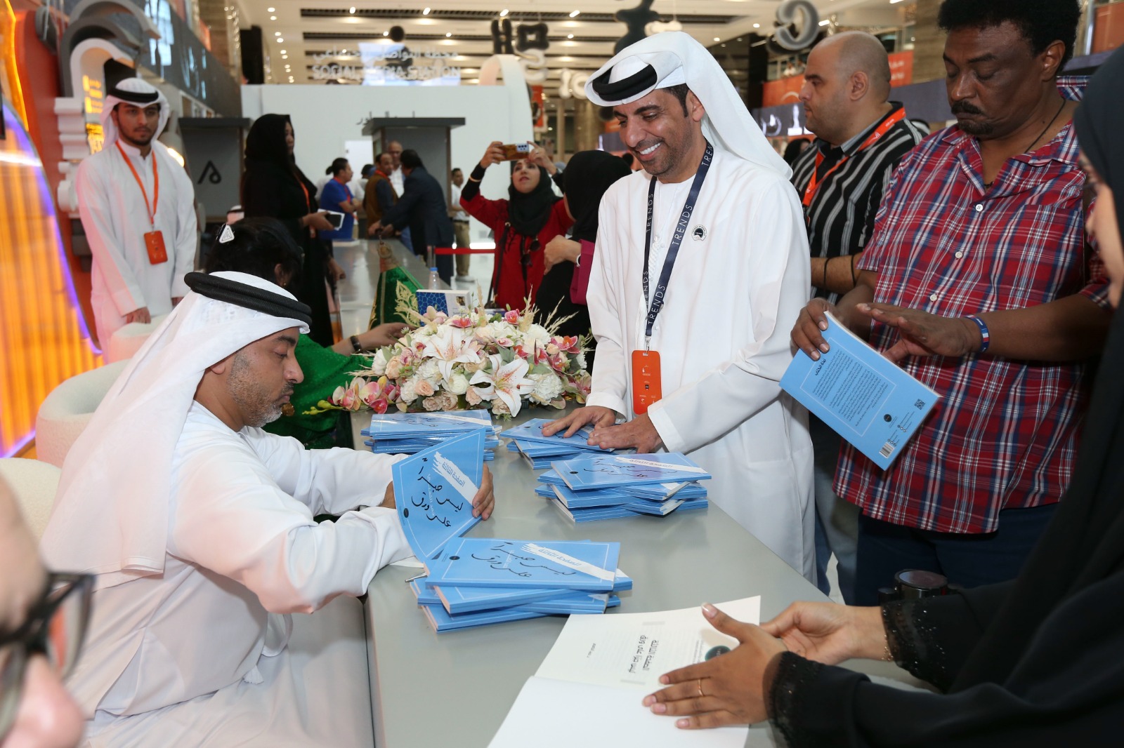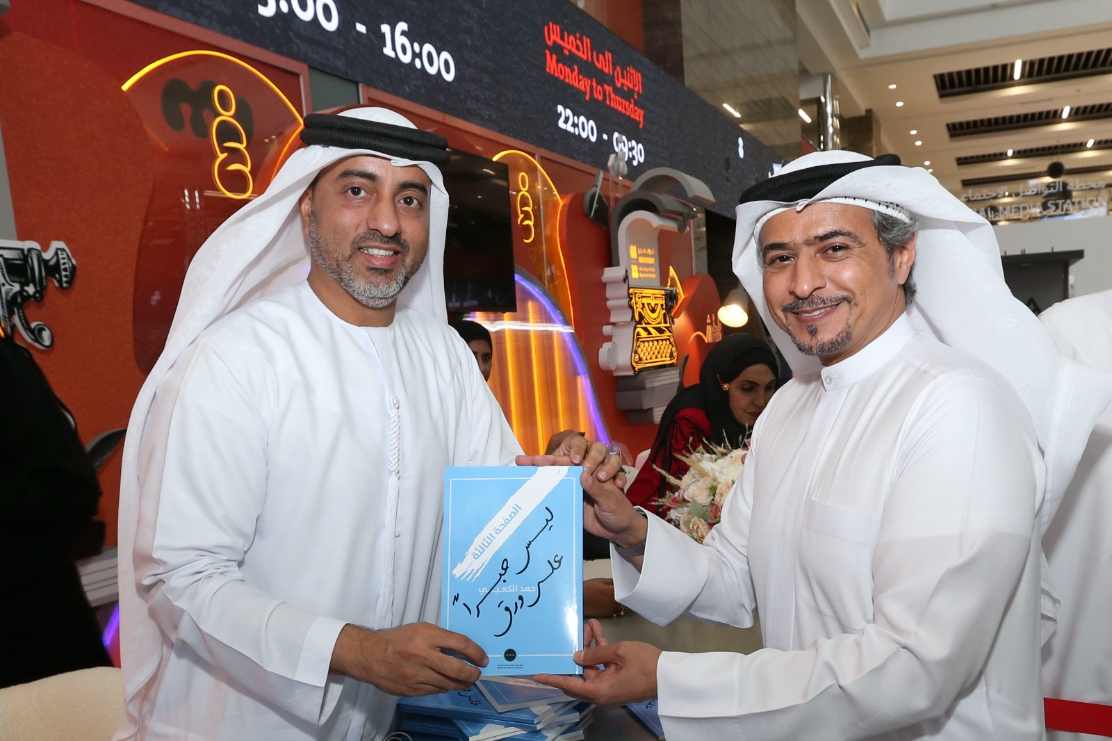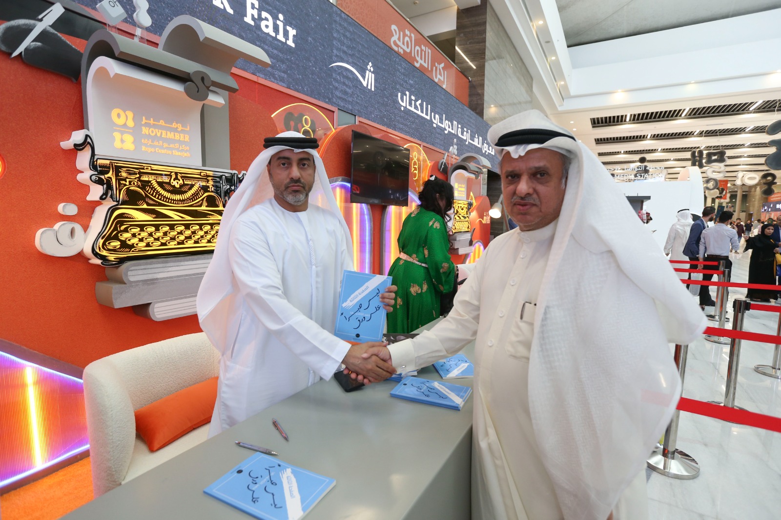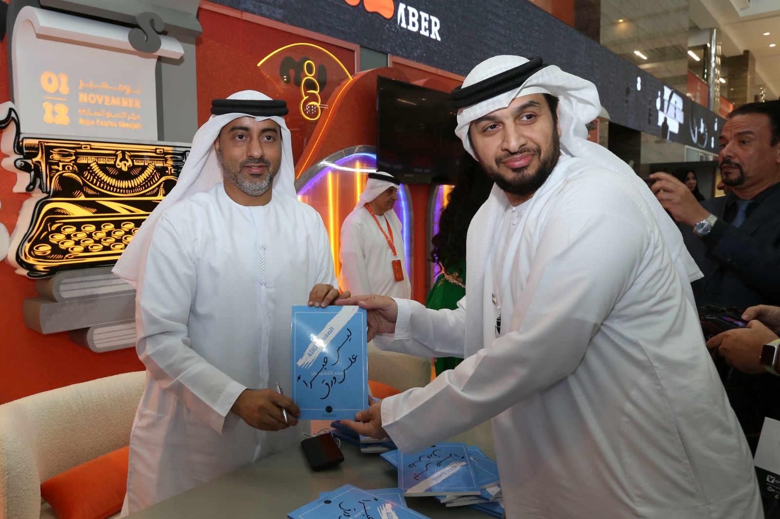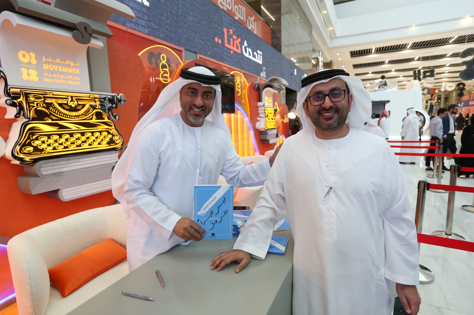 عمون - ضمن فعاليات النسخة الثانية والأربعين من معرض الشارقة الدولي للكتاب، وقع الدكتور حمد الكعبي رئيس مركز الاتحاد للأخبار في شبكة أبوظبي للإعلام، كتابه الصفحة الثالثة .. ليس حبرا على ورق ، الصادر عن مركز تريندز للبحوث والاستشارات، بحضور أحمد بن ركاض العامري رئيس هيئة الشارقة للكتاب، والدكتور محمد العلي المدير التنفيذي لمركز تريندز، ولفيف من المثقفين والأدباء.