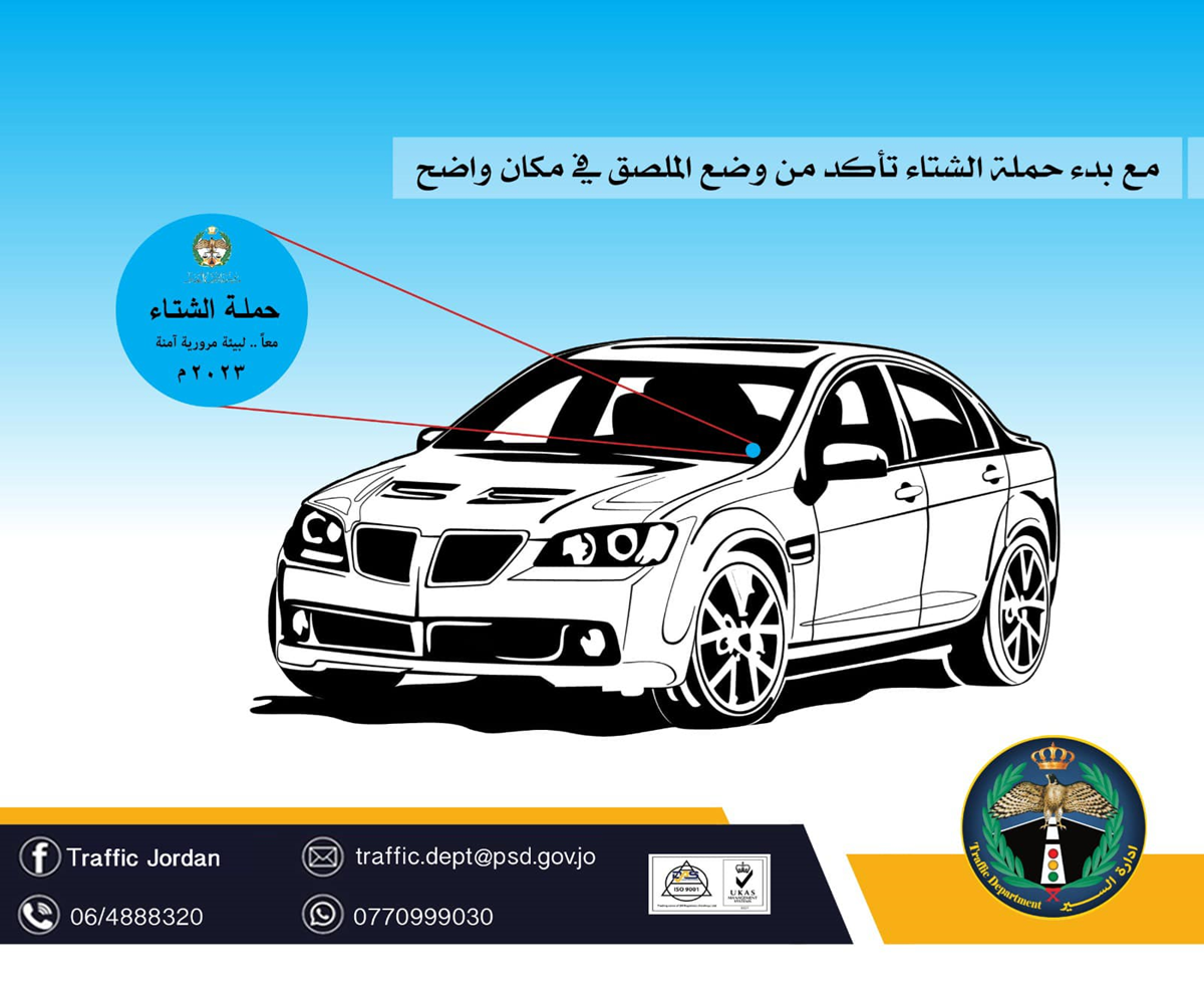 عمون - دعت إدارة السير المركزية السائقين إلى ضرورة وضع اللاصق المخصص لحملة الشتاء على زجاج المركبة بمكان واضح، للإشارة إلى استعداد المركبة لاستقبال موسم الشتاء. |