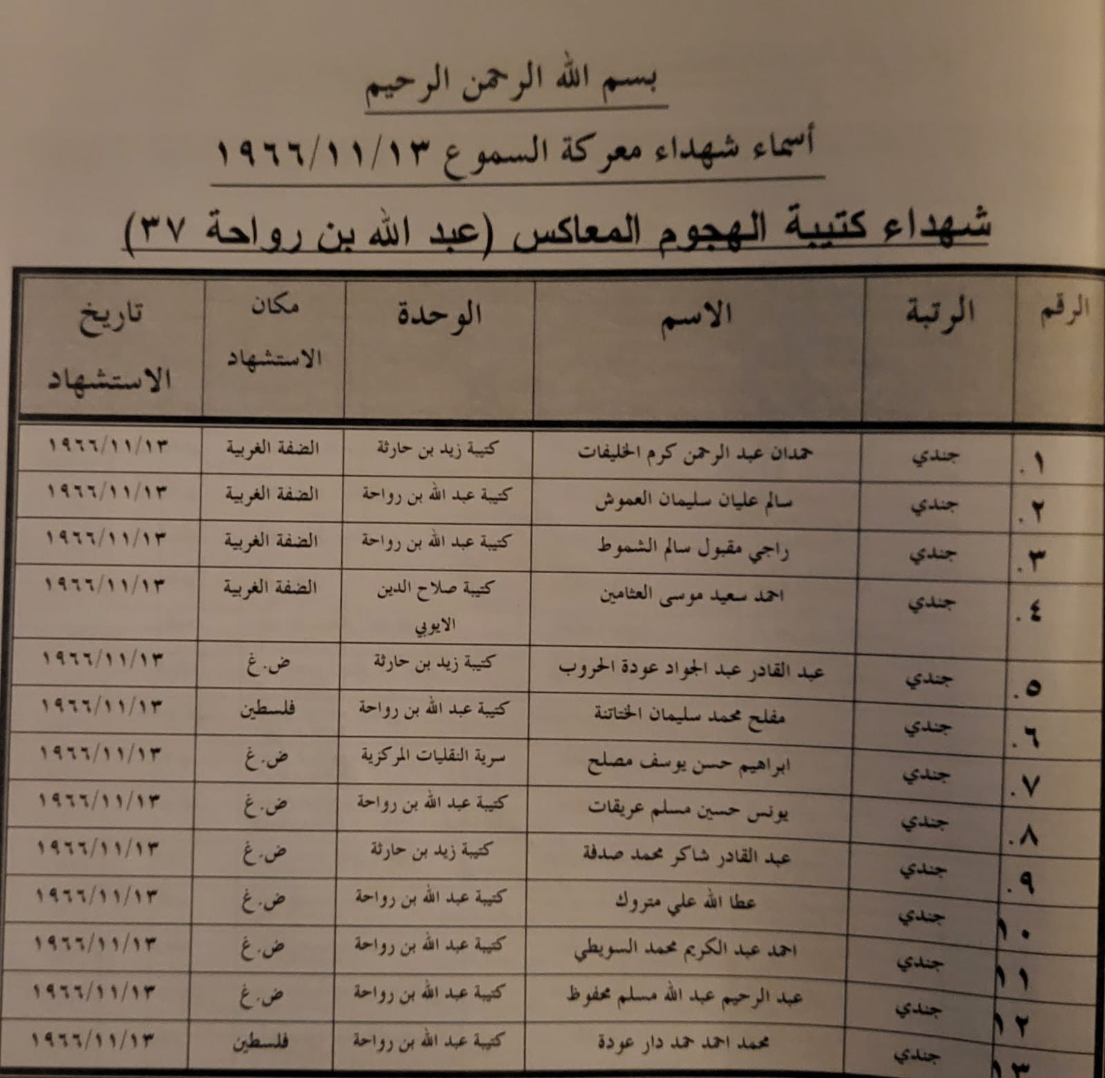 يصادف الذكرى السابعة والخمسين لمعركة السموع التي لم تتعدَ 5 ساعات ومهدت لحرب ١٩٦٧ وتسببت بخسائر كبيرة لجيش الاحتلال وخلفت عشرات القتلى والجرحى وتدمير عدد من الدبابات والاليات والطائرات .