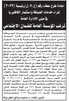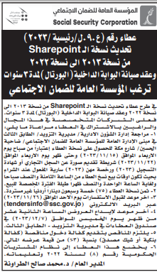 عطاءات صادرة عن المؤسسة العامة للضمان الاجتماعي