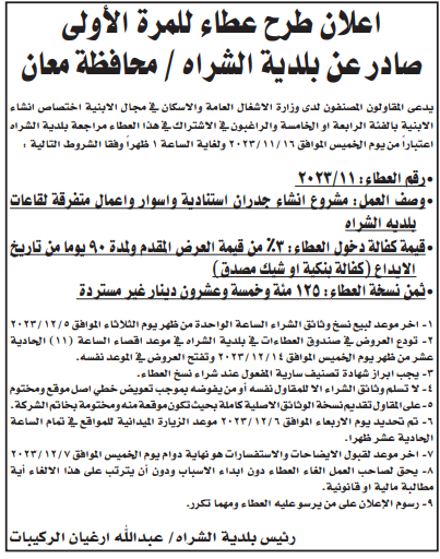 مطلوب انشاء جدران استنادية لبلدية الشراه