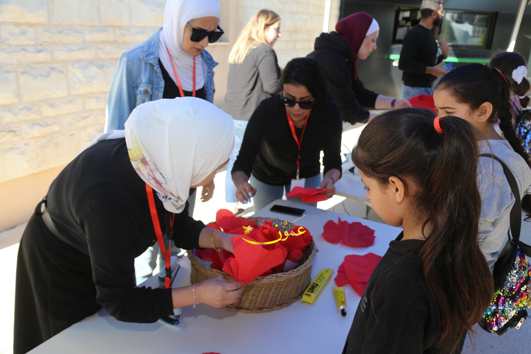 وتبعت المسيرة مشاركة الأطفال في رسم جدارية "تضامن وحب من أطفال الأردن لأطفال غزة" وتضمنت الجدارية رموزًا من التراث الفلسطيني.