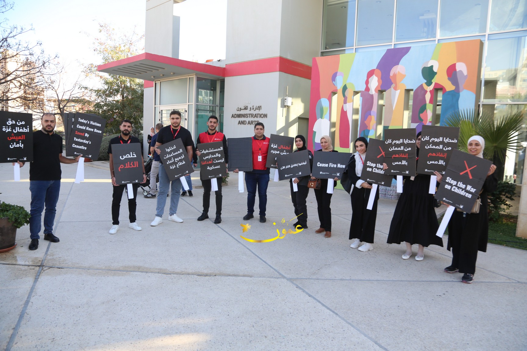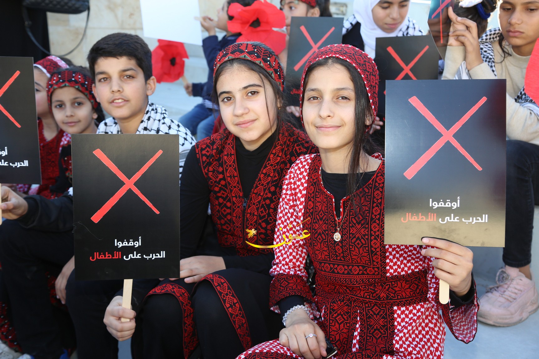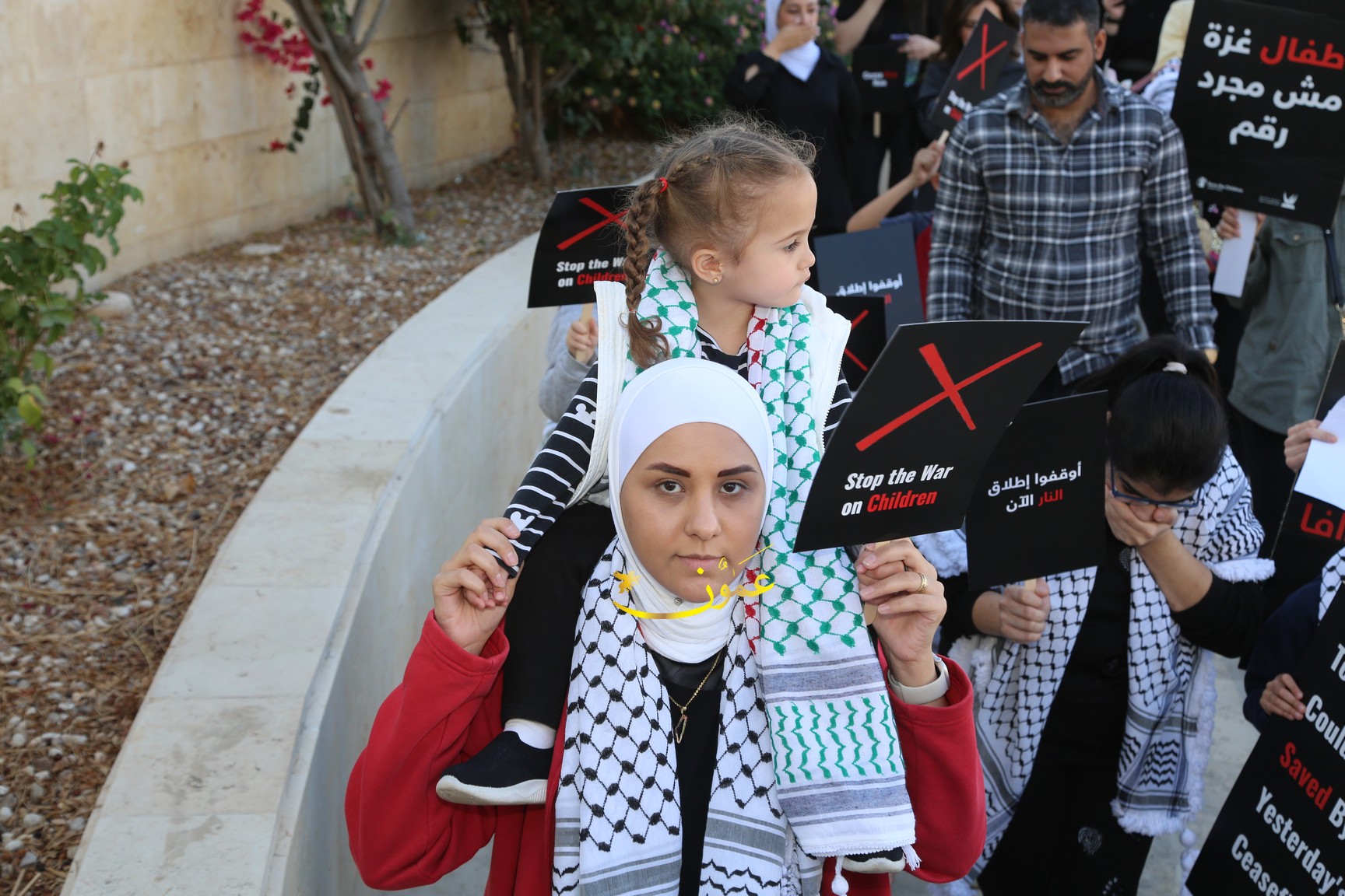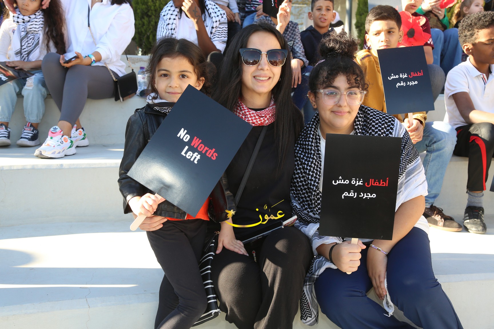 ومن أمام شجرة الزيتون وجهت الطفلة تالين حبش رسالة من أطفال الأردن لأطفال غزة، وقالت "لأطفال غزة نعتز بصمودكم وقوتكم، قلوبنا وصلوتنا معكم، نقف نحن أطفال الأردن هنا لتصل رسالتنا إلى العالم اجمع أوقفوا إطلاق النار، أوقفوا العدوان ".