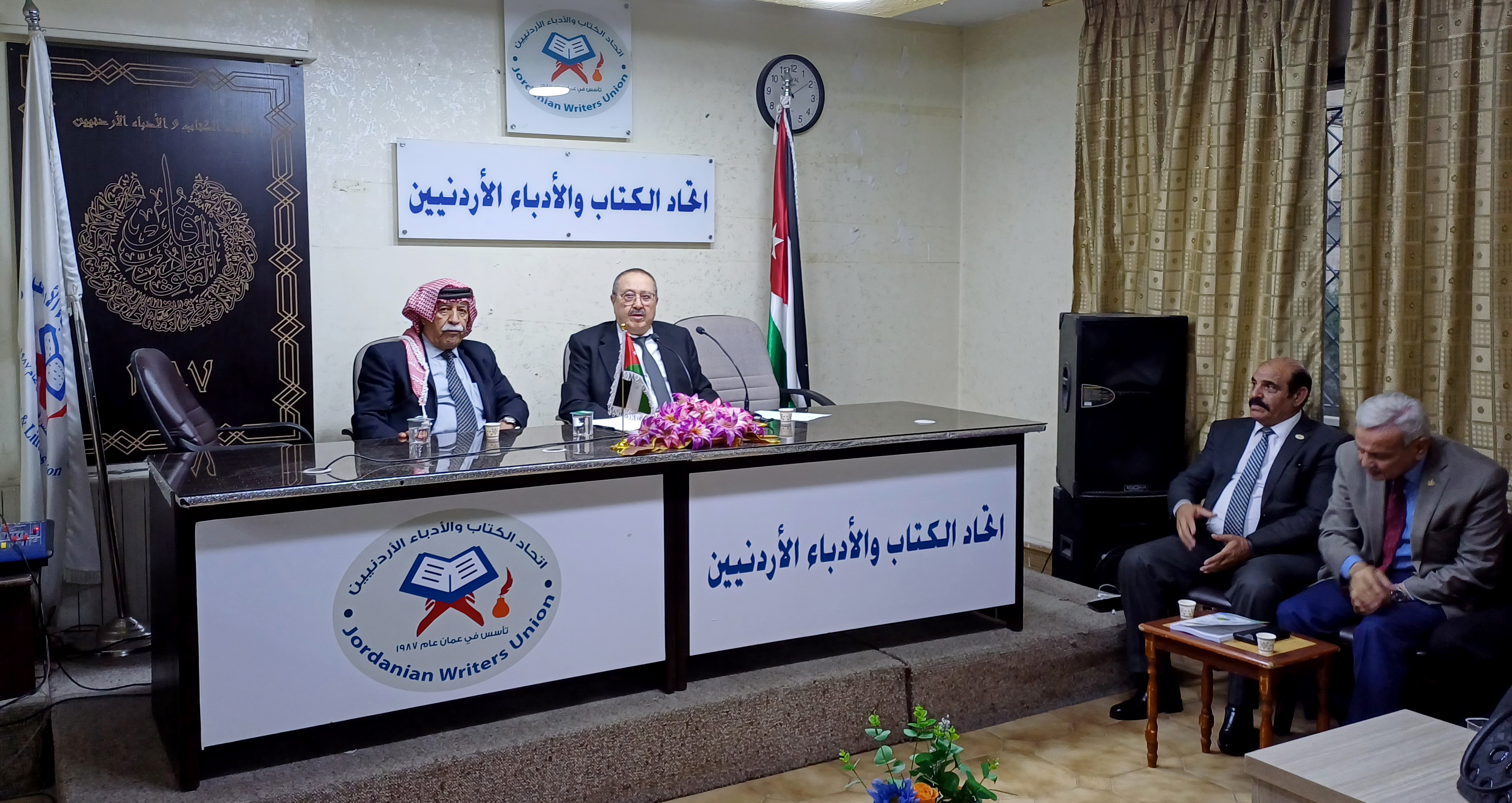 عمون - ثمنت محاضرة بعنوان "طوفان الاقصى على درب الكرامة"، القاها الاعلامي شاكر حداد، مساء اليوم السبت، في مقر جمعية اتحاد الكتاب والادباء الاردنيين بعمان، الموقف الاردني الرسمي بقيادة جلالة الملك عبدالله الثاني في السعي الدؤوب لوقف الحرب، على غزة وتوفير الدعم للاشقاء.