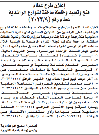 مطلوب فتح وتعبيد شوارع الراشدية في بلدية القويرة