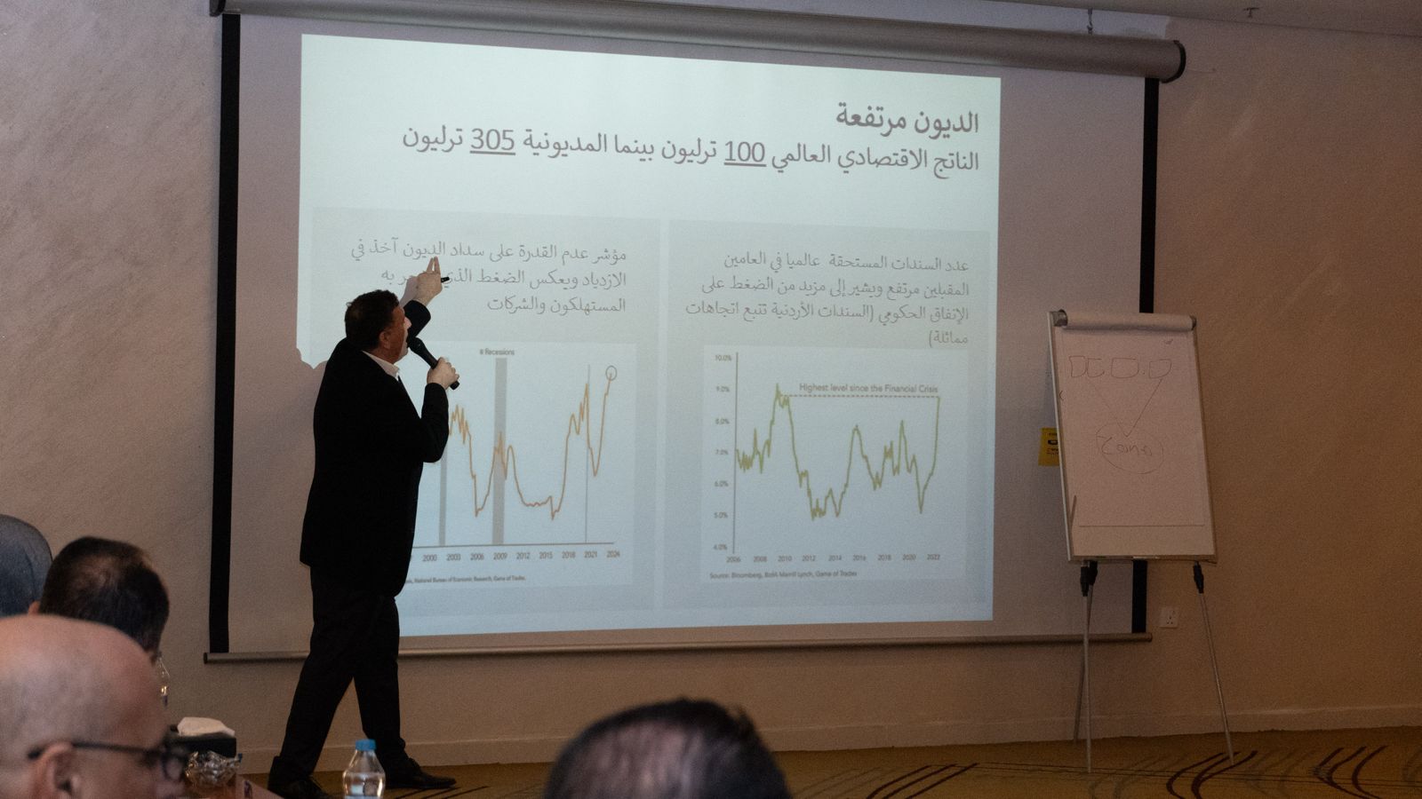 كما شرح عدد من المزايا التنافسية للاقتصاد الاردني مثل رأس المال البشري والتعليم والرعاية الصحية والتكنولوجيا وريادة الأعمال كما تطرق لتزايد مشكلة المياة والكهرباء و وضح اهمية قرار الحكومة الاردنية عدم التوقيع على اتفاقية تبادل الطاقة ( الازدهار الاخضر ) مقابل الماء ( الازدهار الازرق ) مع اسرائيل والتي تعتبر خطوة مهمة في سياق الضغط على اسرائيل لوقف حربها الدموية الوحشية بحق الاشقاء في فلسطين
