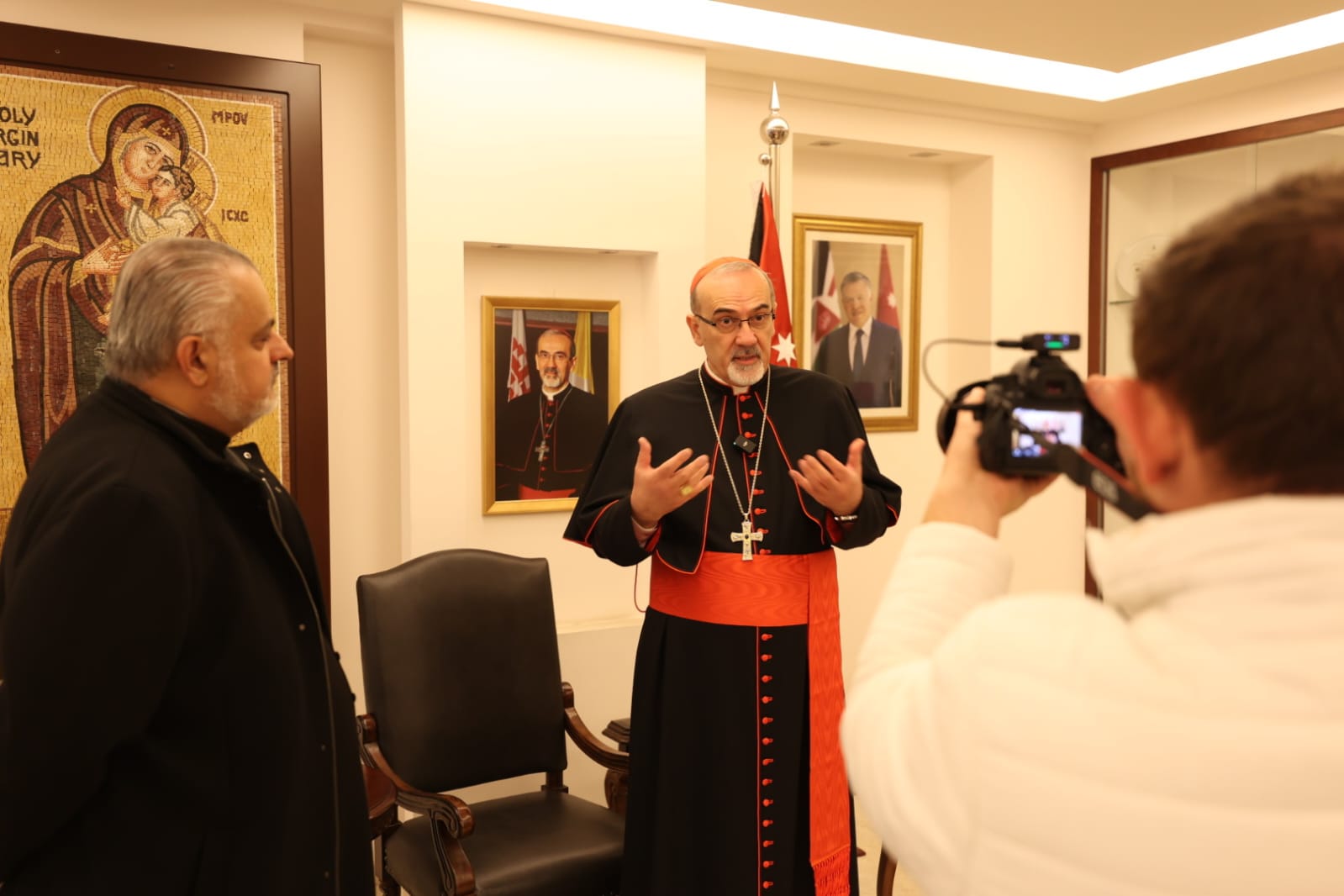 وقال نيافته في زيارته الأولى إلى الأردن منذ تنصيبه كاردينالاً في الكنيسة الكاثوليكيّة في أيلول الماضي، إنّ الأردن يسير باتجاهين حكيمين وإنسانيين، أولاً من خلال الجهود الدبلوماسيّة التي يقودها جلالة الملك عبدالله الثاني ابن الحسين، ويتحدّث فيها عبر المنابر الإقليميّة والدوليّة من أجل العدالة والسلام. وثانيًا، من خلال مد يد العون والمساعدة الاردنية الهاشمية لأبنائنا المتألمين والجرحى والمصابين في غزة، من خلال المستشفى الأردني الميداني الأول الذي زرته في السابق واطلعت على ما يقوم به من أعمال خير وإحسان، وكذلك من خلال المستشفى الميداني الجديد الذي تمّ افتتاحه يوم أمس.