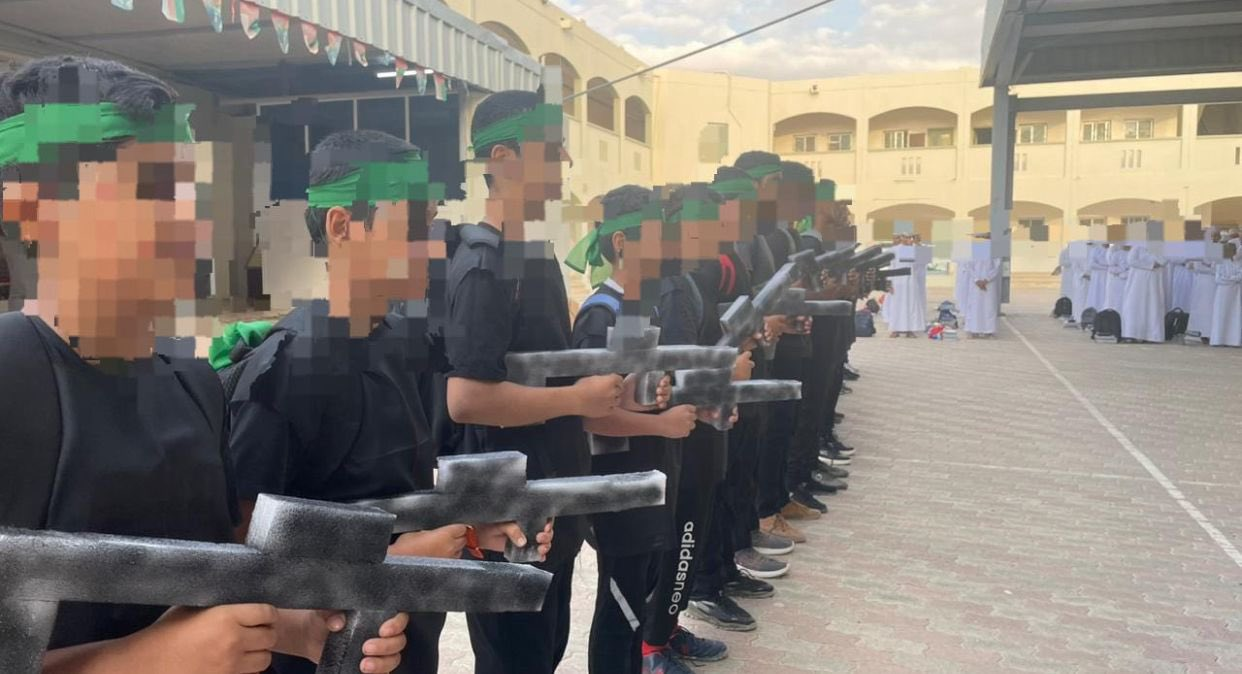 عمون - اثارت صور وفيديوهات لطلبة احدى مدارس سلطنة عُمان وهم يتدربون على اسلحة صورية ويضعون شارات خضراء على رؤوسهم نقاشات معارضة في ولايات السلطنة ووسائطها المختلفة.