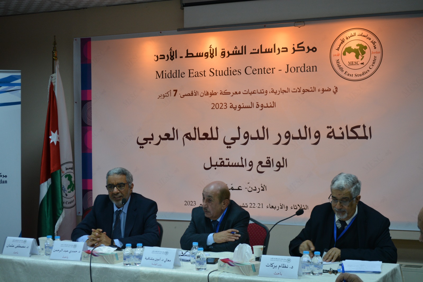 عمون - أكد المتحدثون في الندوة التي أقامها مركز دراسات الشرق الأوسط بعنوان "المكانة والدور الدولي للعالم العربي، الواقع والمستقبل"، على ضرورة البناء على نتائج معركة طوفان الأقصى يوم 7 أكتوبر في التعامل مع الصراع العربي- الإسرائيلي، على أساس دعم الشعب الفلسطيني في مواجهة الاحتلال وتحرير أرضه وإقامة دولته المستقلة، وإعادة الاعتبار للقضية الفلسطينية كقضية مركزية للعرب باعتبارها عنصر الاتفاق القوي والوحيد بين الشعوب والأنظمة الرسمية، وأن إسرائيل تُعبتر مصدر التهديد الرئيسي لأمن واستقرار المنطقة، وما يتطلب ذلك من تعديلات تشريعية وقانونية وسياسية وعسكريةـ خصوصاً بعد معركة طوفان الأقصى، بوصفها رافعة وديناميكية لاستراتيجية ناجحة.