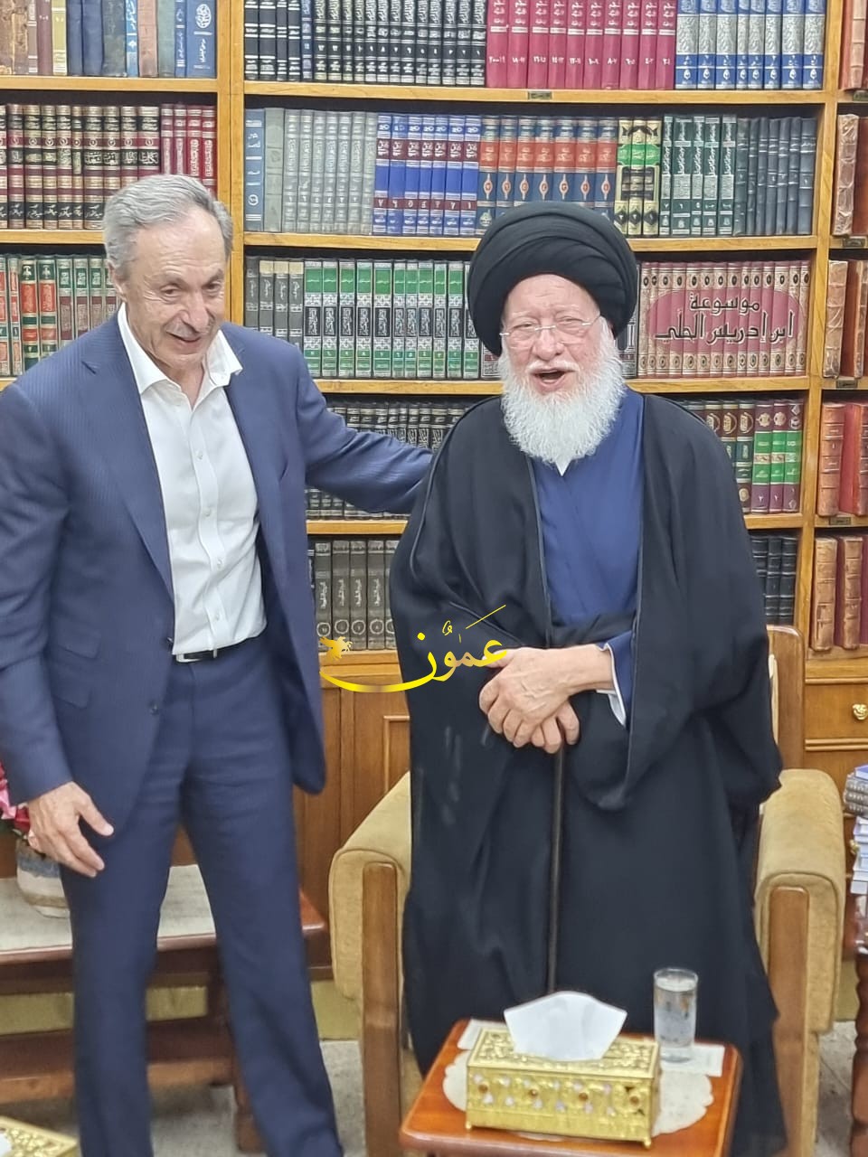 عمون - استقبل المرجع الديني الشيعي حسين أسماعيل الصدر، رئيس الوزراء الأردني الأسبق عبدالكريم الكباريتي. |