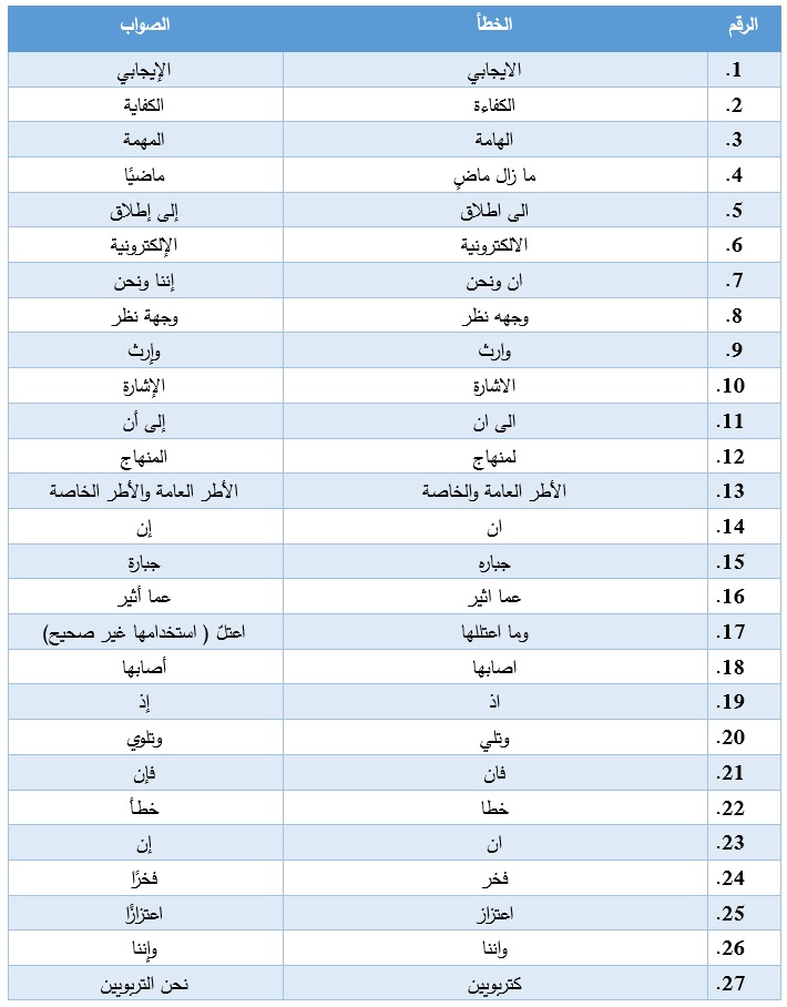 3-والآن اسمح لي أن أزوّدك بقائمة الأخطاء الإملائية مع تصويباتها: