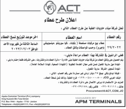 عطاء صادر عن شركة ميناء حاويات العقبة