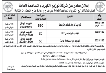 عطاءات صادرة عن شركة توزيع الكهرباء