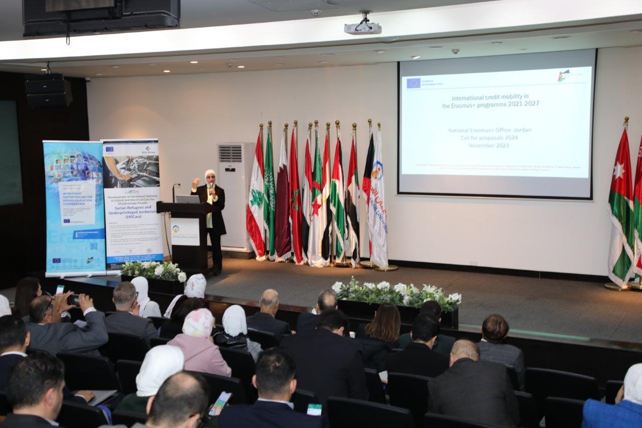 بدوره استعرض مدير مكتب إيراسموس بلس (Erasmus+) الوطني الدكتور أحمد أبو الهيجاء أثر البرنامج وحجم التعاون الأوروبي - الأردني في مجال التعليم العالي، حيث مكّن البرنامج المؤسسات التعليمية الأردنية من التعاون مع المؤسسات النظيرة لها في 30 دولة أوروبية، وأكثر من 6600 منحة تبادل تم توفيرها للعاملين والطلبة.
