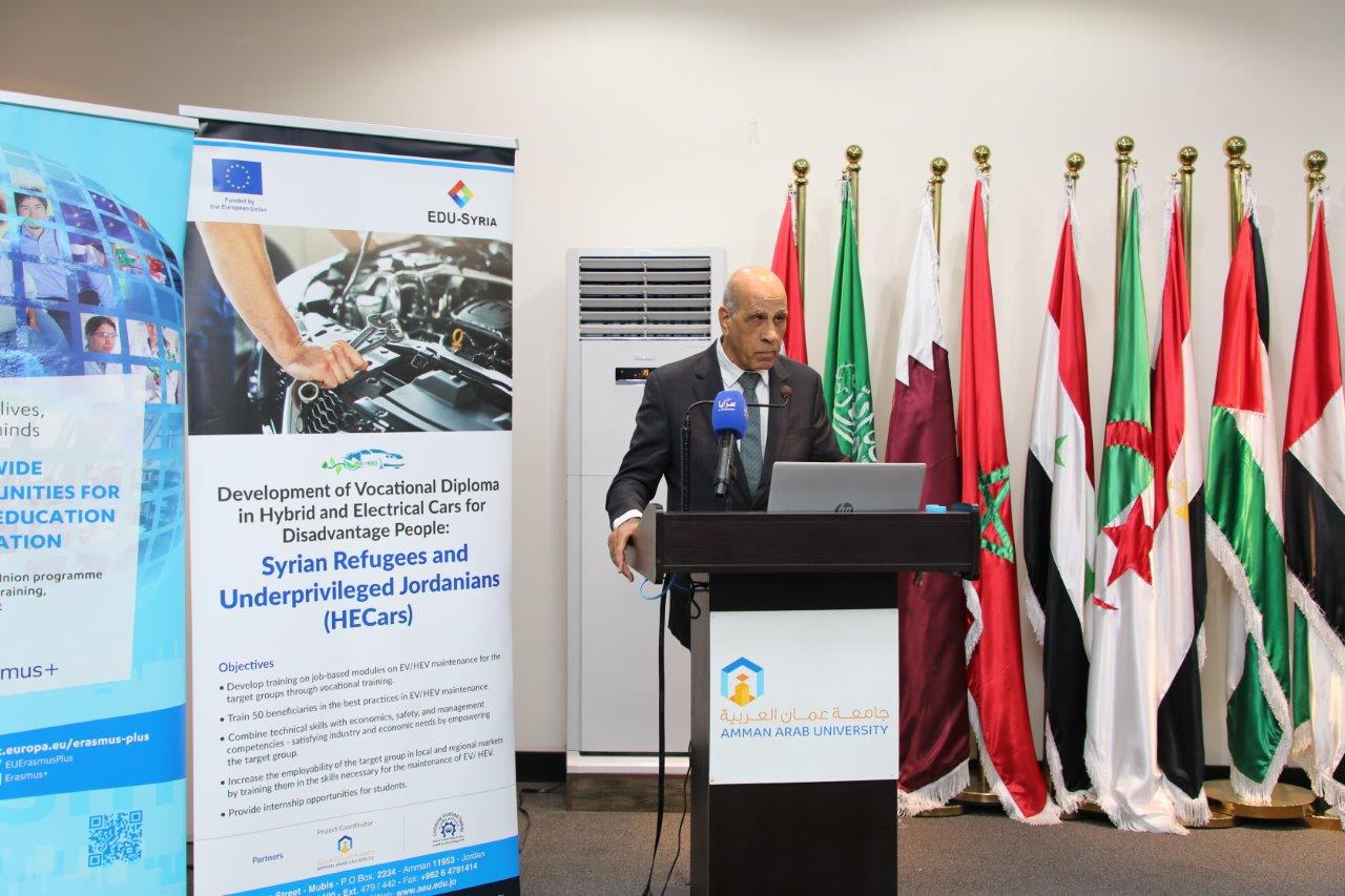 وأكد الوديان في كلمته بأن إيراسموس+ شكلت قوة تحويلية لجامعة عمان العربية والذي عمل على تمكينها من الدخول في شراكات هامة مع مؤسسات تعليمية أوروبية مرموقة في دول مثل (المملكة المتحدة، ايطاليا، البرتغال) من خلال برنامج التبادل الأكاديمي International Credit Mobility و بناء قدرات العاملين في التعليم المهني والتقنيCapacity Building in the field of Vocational Education and Training (VET) (الدبلوم المهني في سلامة الطيران( وهو المشروع الذي جاء بالتعاون مع جامعات أوروبية من اليونان و لتوانيا و تركيا، بالإضافة إلى مؤسسات تعليمية أردنية)، وقد كانت تجربة أعضاء الهيئة التدريسية المشاركين بهذه المشاريع بمثابة فرصة لتوسيع افاقهم و إثراء تجربتهم الأكاديمية ، بالإضافة إلى أنه تأثير هذا التعاون لا تقتصر على تعزيز جودة التعليم والبحث في جامعتنا ولكن ايضاً في تقدم المعرفة بمعايير عالمية، حيث شهدنا نتائج ملموسة أثرت بشكل إيجابي على جامعة عمان العربية مما انعكس ايجابياً على تطوير البنية التحتية في الجامعة بما يتواكب مع التطورات العالمية.