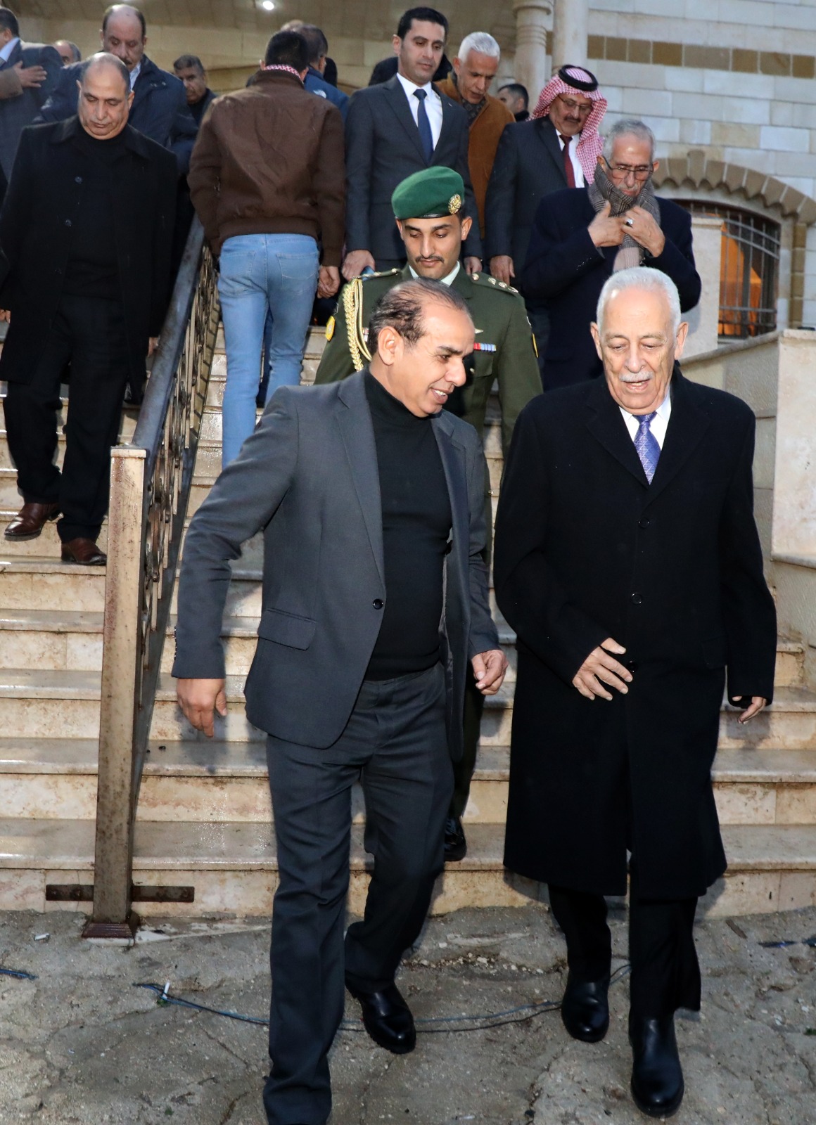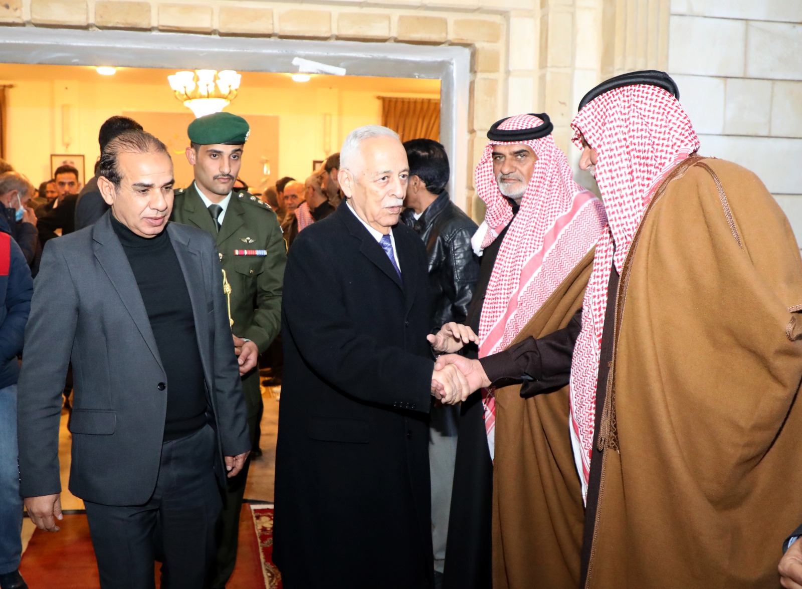 عمون - مندوبا عن جلالة الملك عبدالله الثاني ابن الحسين المعظم، وسمو ولي العهد المعظم، قدم رئيس الديوان الملكي الهاشمي السيد يوسف حسن العيسوي واجب العزاء الاثنين الموافق 27-11-2023 بالمرحومين علي السعود الرقاد (ابو نضال) و العقيد المتقاعد محمد عساف الرقاد (ابو طايل). |