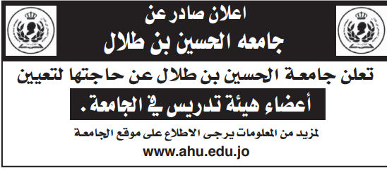 ترغب جامعة الحسين بن طلاك بتعيين أعضاء هيئة تدريسية