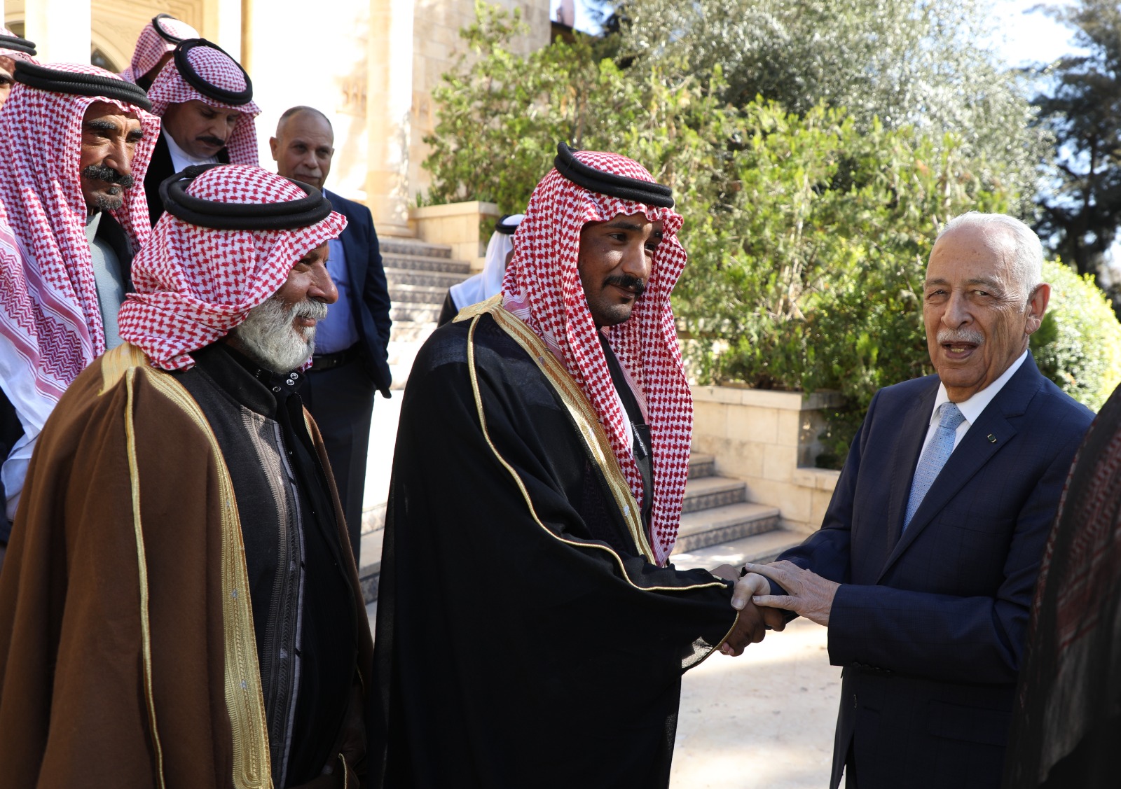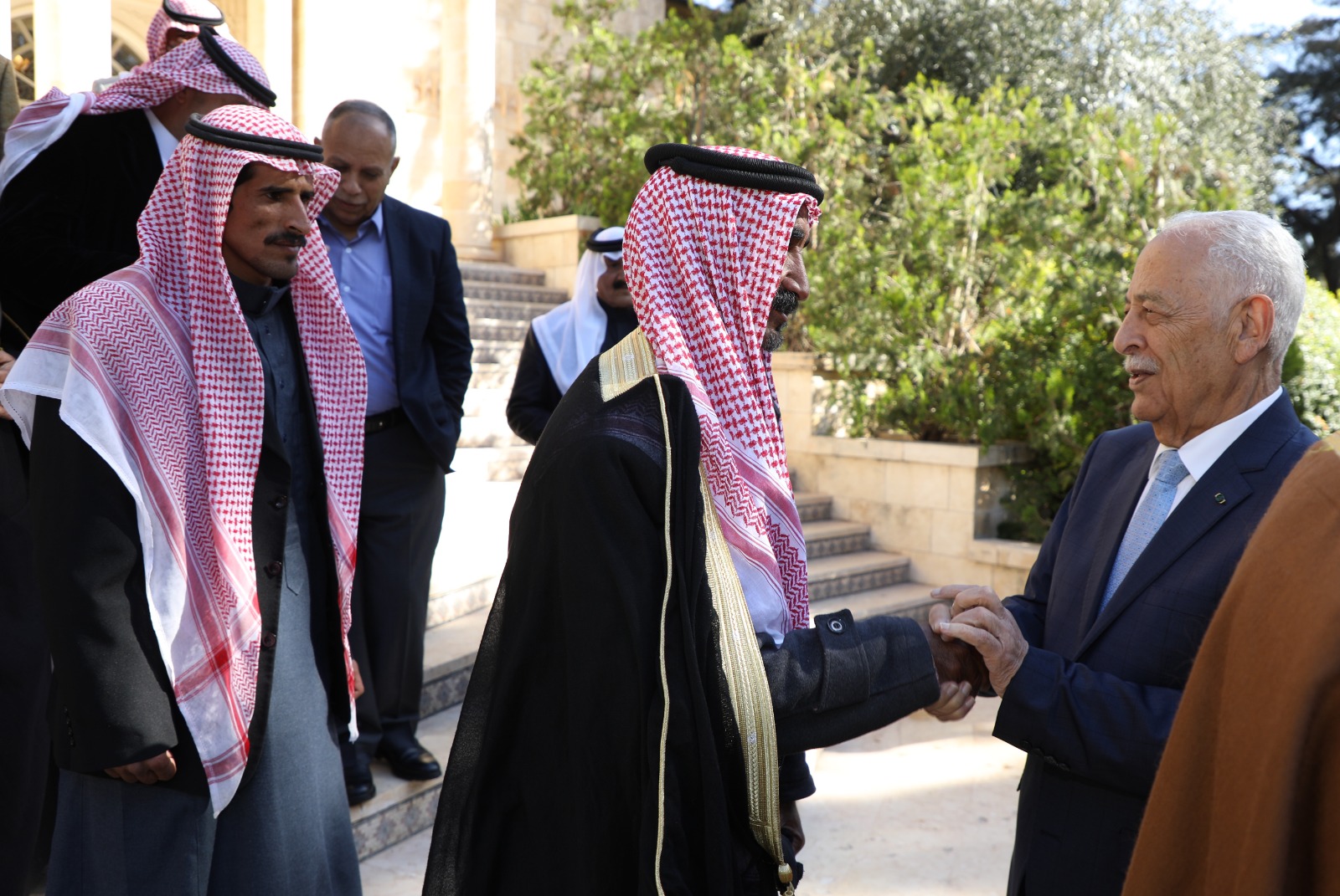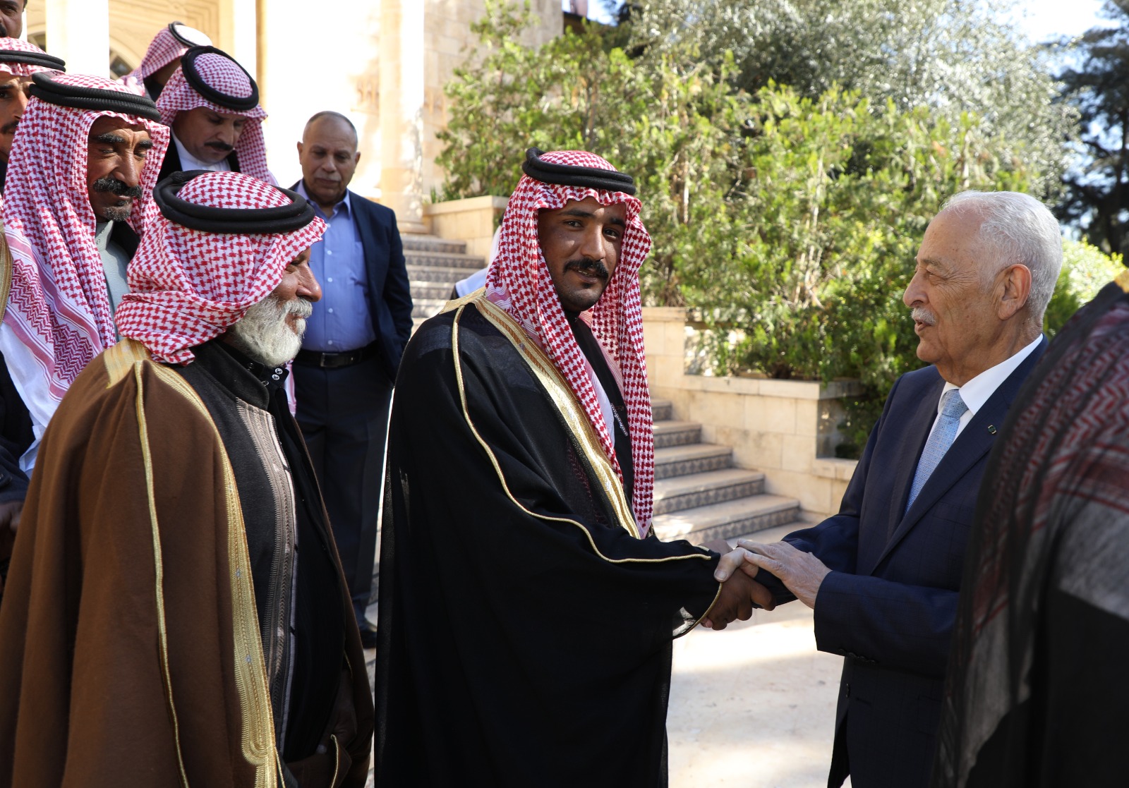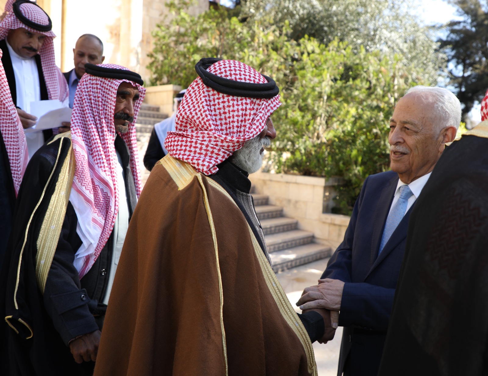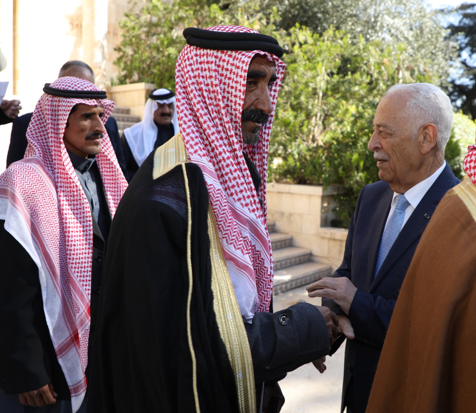 وقال العيسوي، خلال اللقاء، الذي عقد بالديوان الملكي الهاشمي، بحضور مستشار جلالة الملك لشؤون العشائر كنيعان البلوي إن الأردن بقيادة جلالة الملك يقود، ومنذ اللحظات الأولى لاندلاع الحرب الدامية التي يتعرض لها الأشقاء في قطاع غزة، جهودا دولية وإقليمية مكثفة من أجل وقف هذا الحرب، التي يدفع ثمنها الأطفال والنساء وكبار السن.