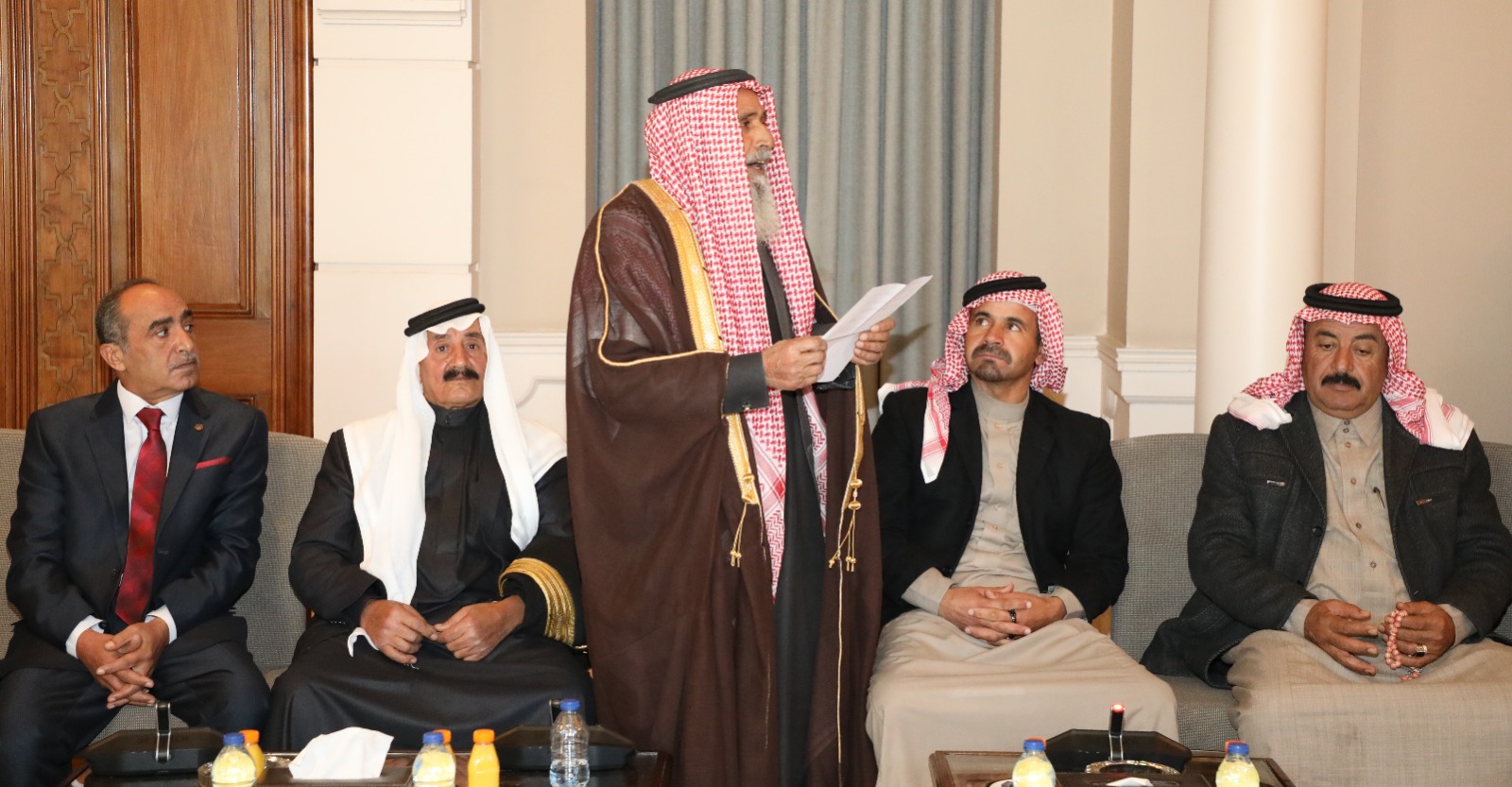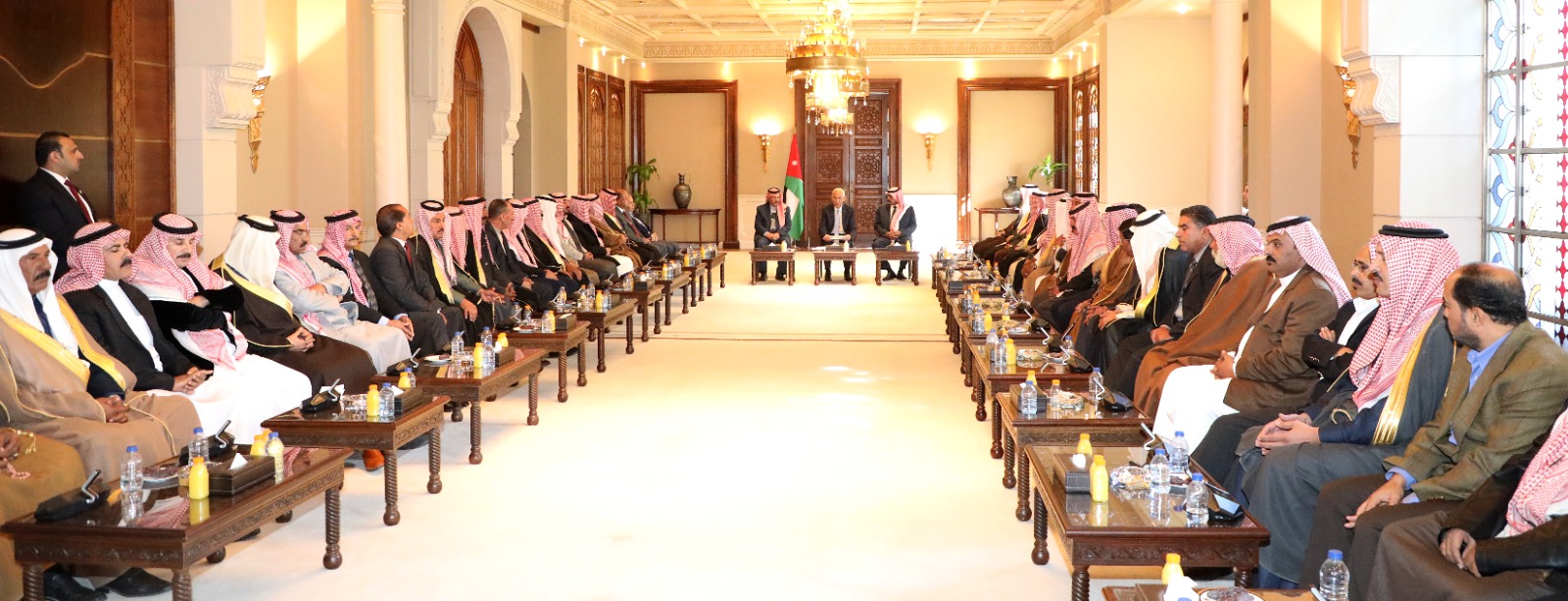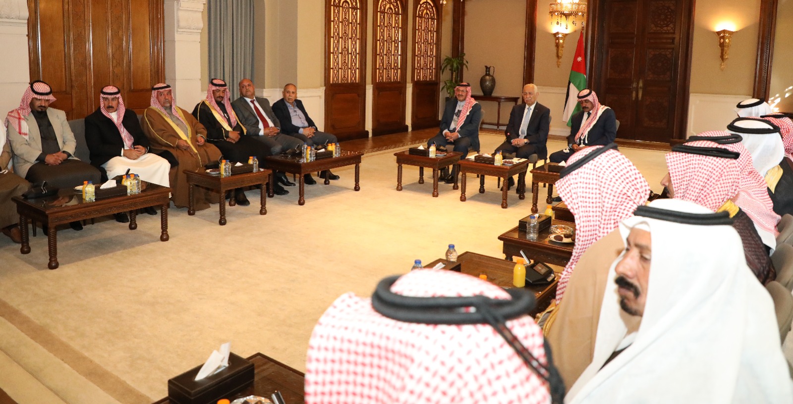جاء ذلك خلال لقائهم، اليوم الأربعاء، رئيس الديوان الملكي الهاشمي يوسف حسن العيسوي، الذي نقل لهم تحيات جلالة الملك، واعتزازه بهم وبجميع الأردنيين.