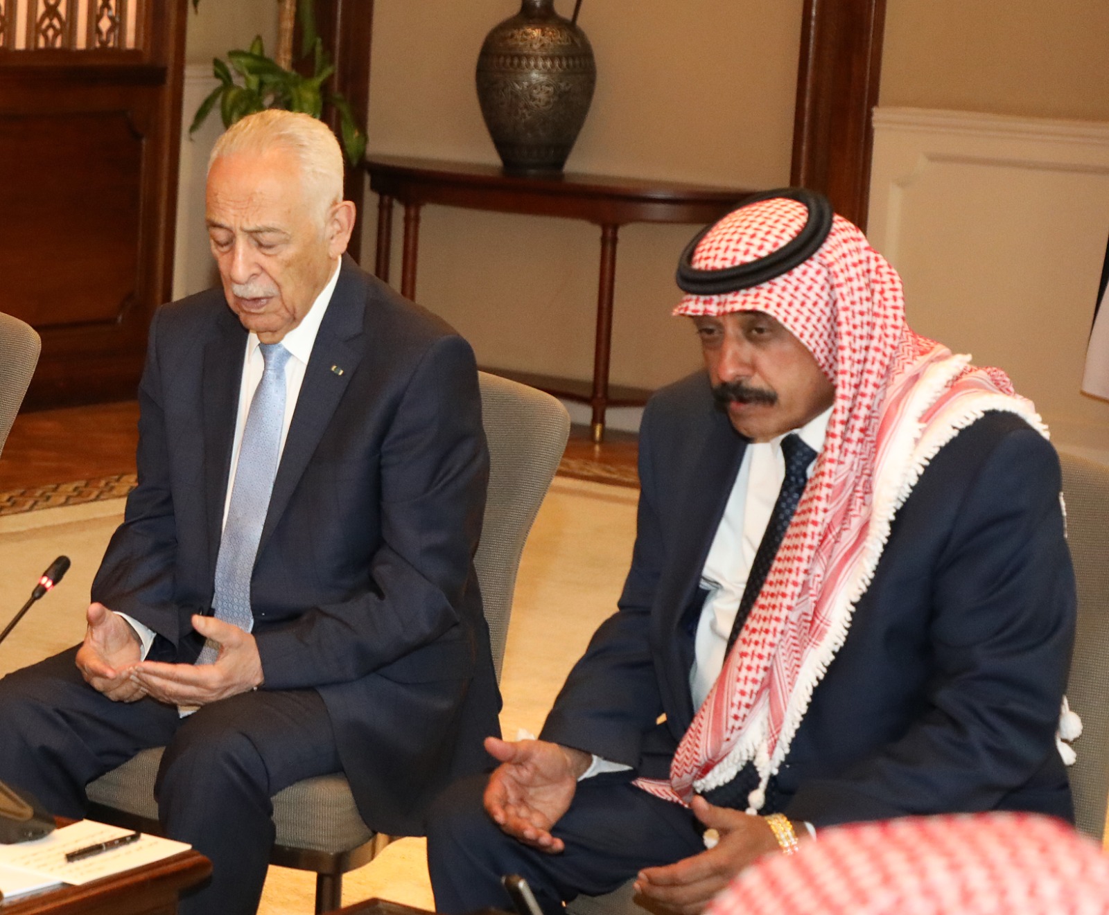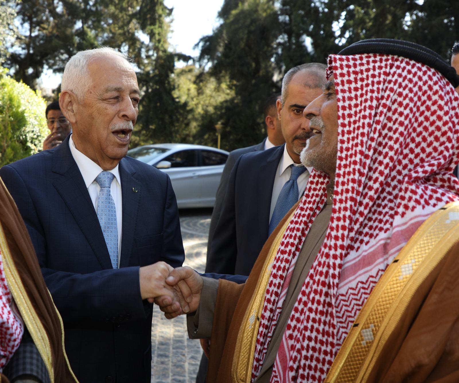 وخلال اللقاء، أشاد الحضور بجهود الأردن، بقيادة جلالة الملك، بكسر الحصار على غزة، من خلال إرسال مستشفى ميداني جديد إلى غزة وتأمين المستشفى الميداني الأول في قطاع غزة بالمستلزمات الطبية من خلال عملية إنزال جوي مظلي، نفذتها طائرات تابعة لسلاح الجو الملكي، بناء على توجيهات ملكية، ومواصلة ارسال المساعدات الإنسانية والإغاثية والطبية منذ اندلاع الحرب.