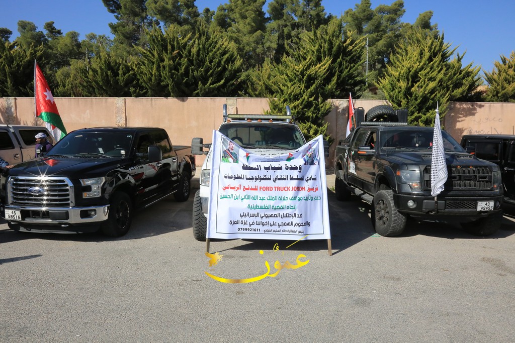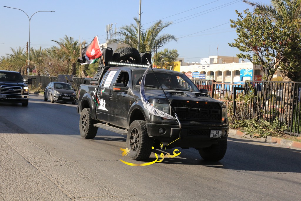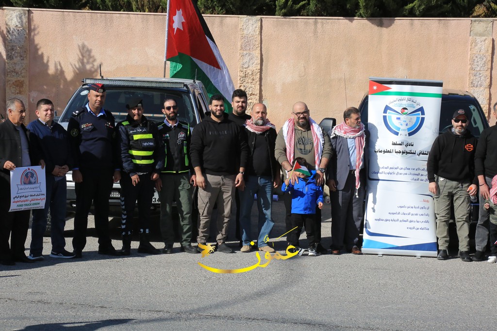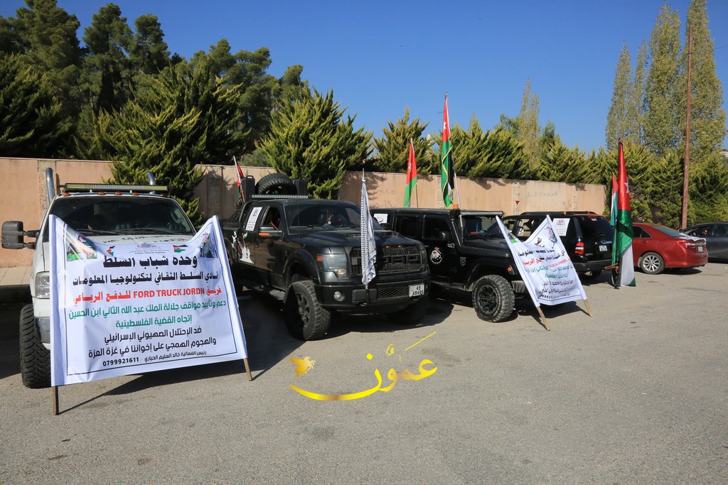 عمون - أقام نادي السلط الثقافي لتكنولوجيا المعلومات، مسيرة لسيارات الدفع الرباعي تؤكد تأييد المشاركين لمواقف جلالة الملك عبدالله الثاني وسمو الأمير الحسين بن عبدالله، ولي العهد، اتجاه فلسطين وغزة ودعم صمودهما.