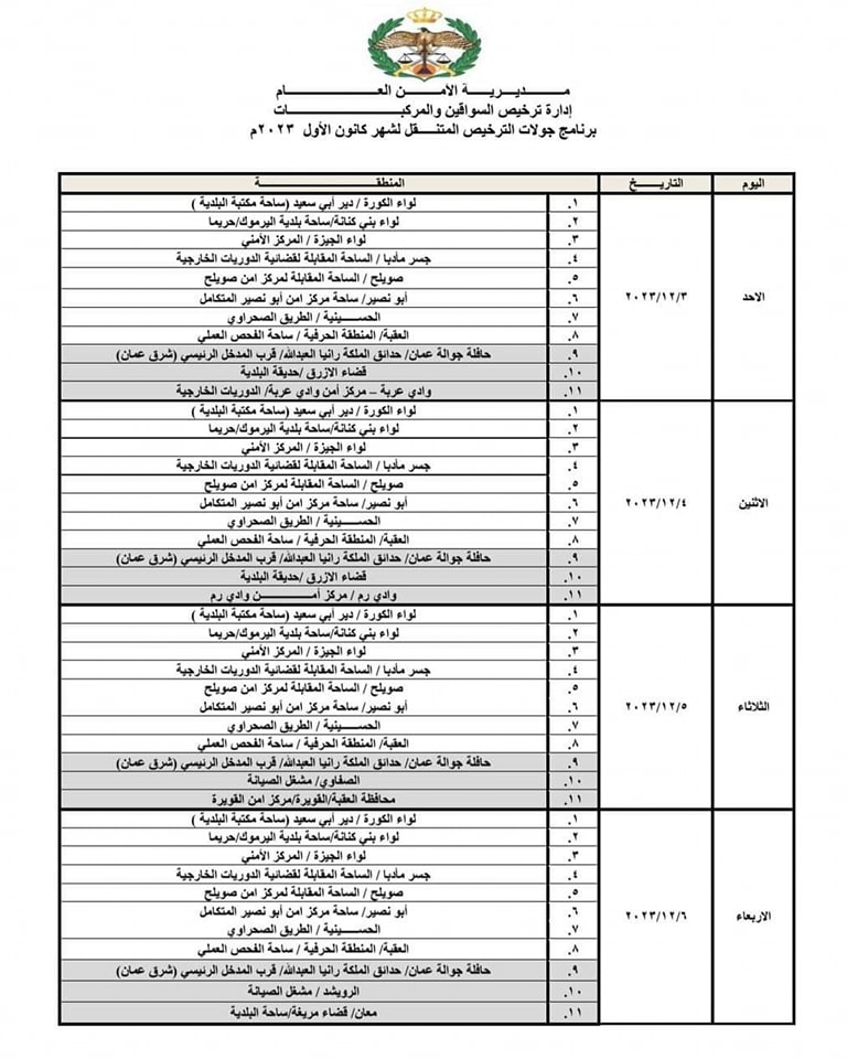 مواعيد جولات الترخيص المتنقل لشهر كانون الأول02-12-2023 12:44 PM