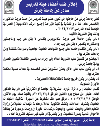 جامعة جرش بحاجة لتعيين اعضاء هيئة تدريسية