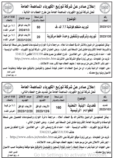 عطاءات صادرة عن شركة توزيع الكهرباء
