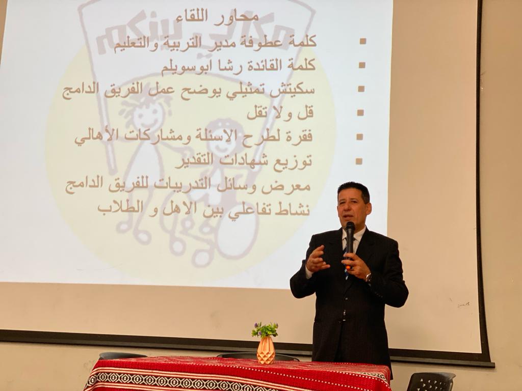 بدأ الحفل بكلمة افتتاحية لمدير التربية والتعليم الأستاذ أحمد المساعفة، تحدث فيها عن أهمية التعليم الدامج، وضرورة توفير فرص التعليم للجميع، ثم ألقيت مديرة المدرسة كلمة تحدثت فيها عن تجربة المدرسة في التعليم الدامج، ومدى نجاحها في دمج الطلاب ذوي الهمم في العملية التعليمية.