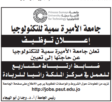 وظيفة شاغرة لدى جامعة الاميرة سمية للتكنولوجيا